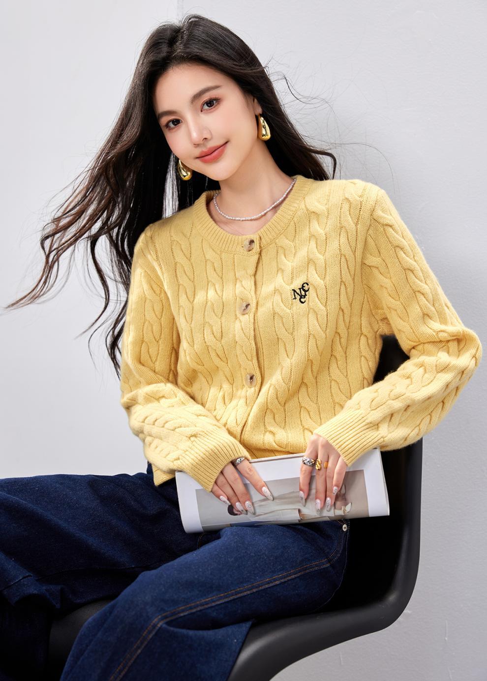 리얼 샷 ◆ 재고 ◆ 평판 호주 메리노 울 트위스트 크루 넥 카디건 재킷 가을 니트 스웨터