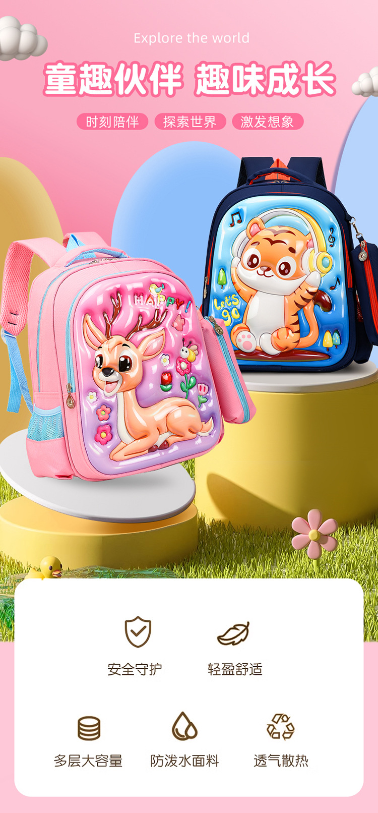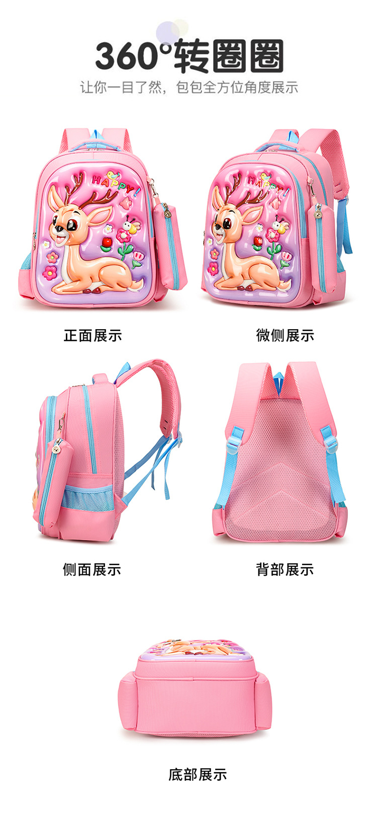 3Dpvc 어린이 하드 쉘 가방 초등학교 학생 가방 2 조각 만화 배낭 1-3 학년 학생 배낭스토어 가기