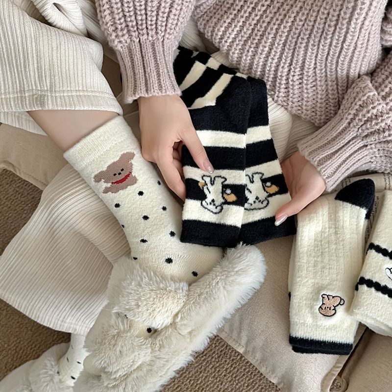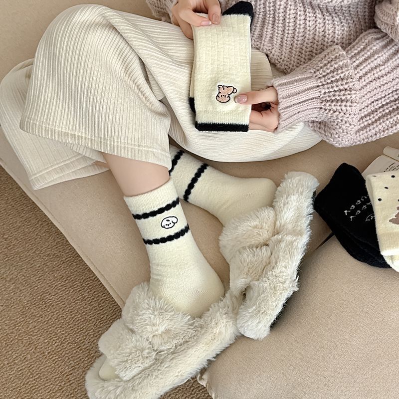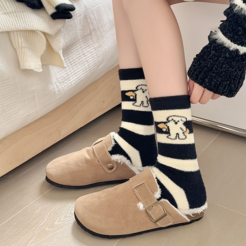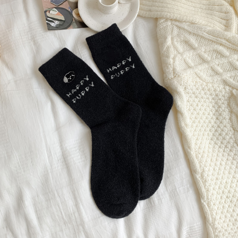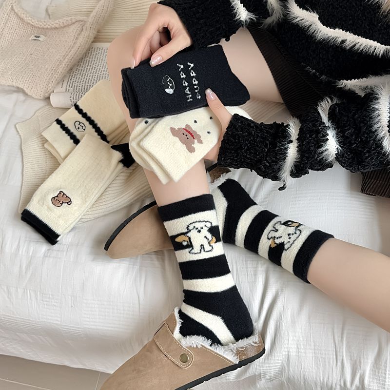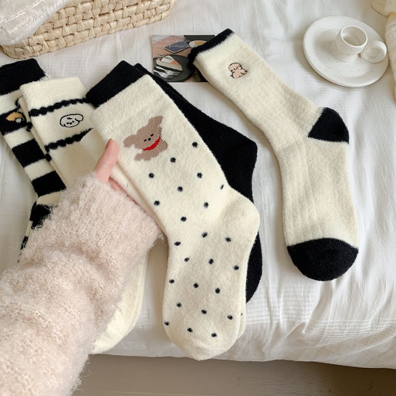 가을과 겨울 부드러운 오스트리아 벨벳 여성 양말 편안한 따뜻한 섬세한 부드러운 두꺼운 기모 만화 귀여운 강아지 튜브 양말스토어 가기