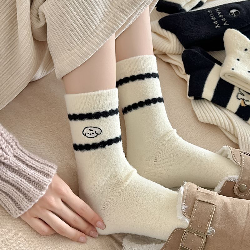 가을과 겨울 부드러운 오스트리아 벨벳 여성 양말 편안한 따뜻한 섬세한 부드러운 두꺼운 기모 만화 귀여운 강아지 튜브 양말