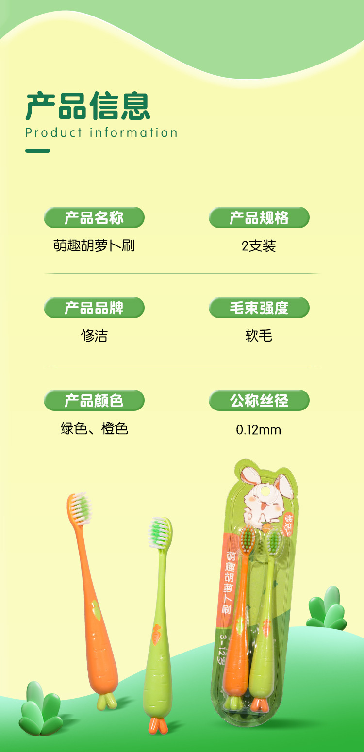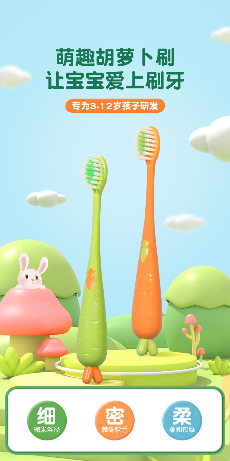 Xiujie 어린이 칫솔 작은 만화 당근 지방 손잡이 칫솔 슈퍼마켓 가정 공장 도매 흔들리는 음성 생성스토어 가기