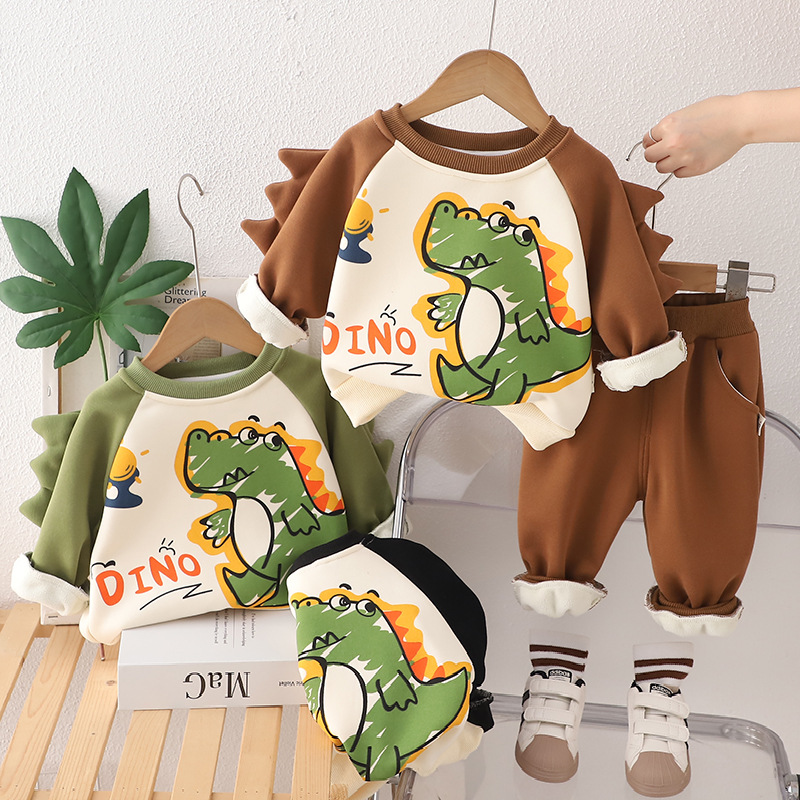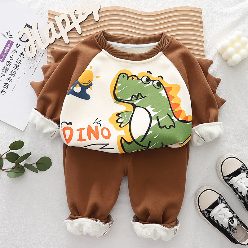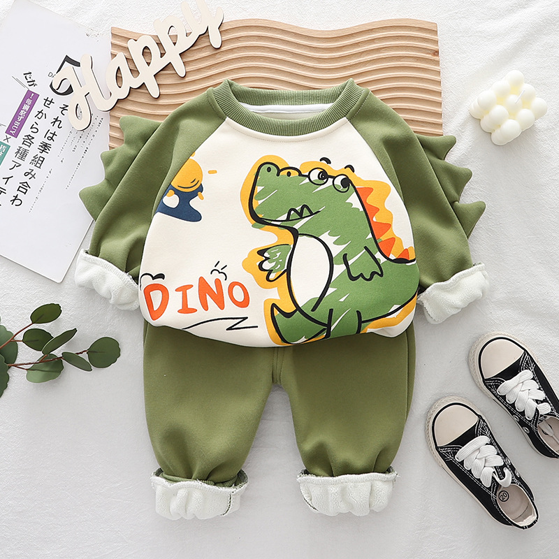 가을 새 소년 기모 만화 긴팔 세트 소년 아기 캐주얼 따뜻한 스웨트 팬츠 2 피스 세트스토어 가기