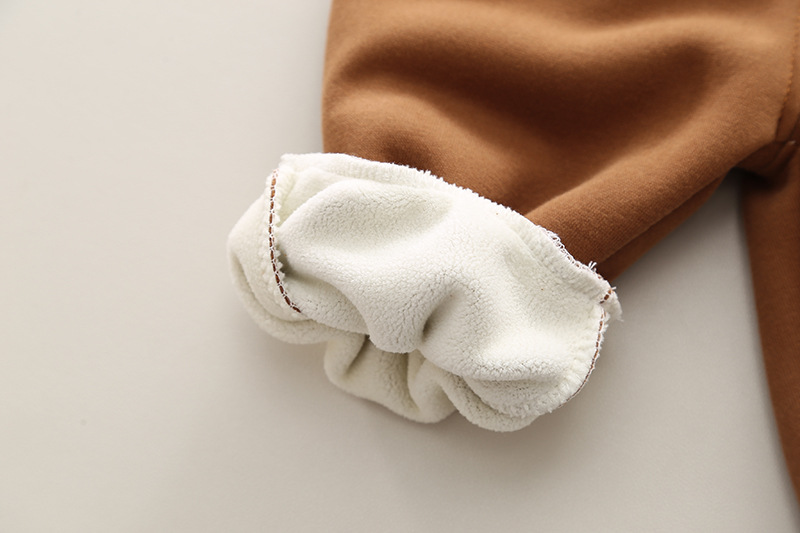 • msw 경사 어깨 치아 작은 공룡 플러스 벨벳 투피스 세트 브라운