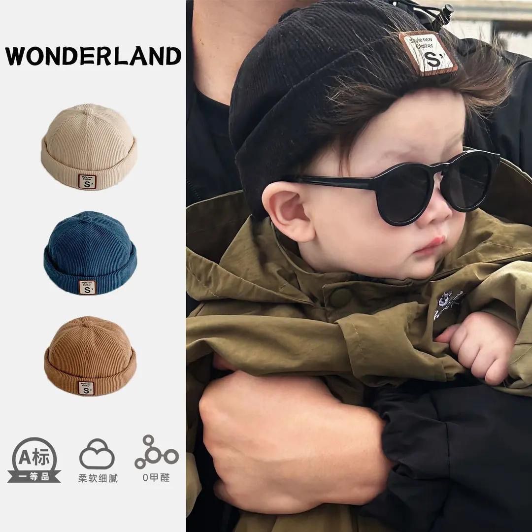 어린이 모자 봄과 가을 한국 스타일 Ins 아기 코듀로이 바닥 모자 가을 소년 소녀를위한 슈퍼 귀여운 멜론 스킨 모자스토어 가기