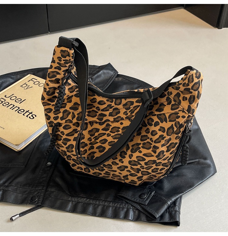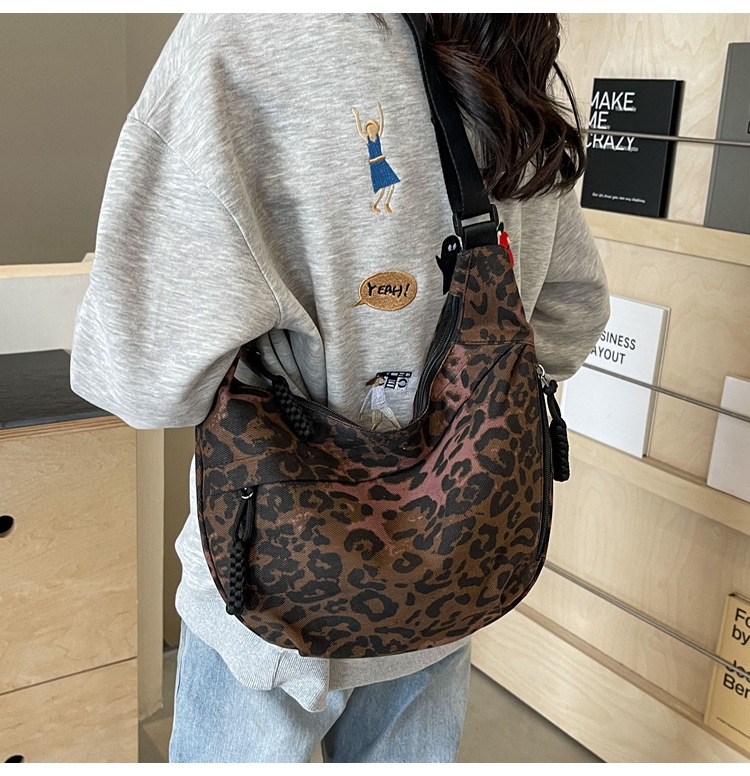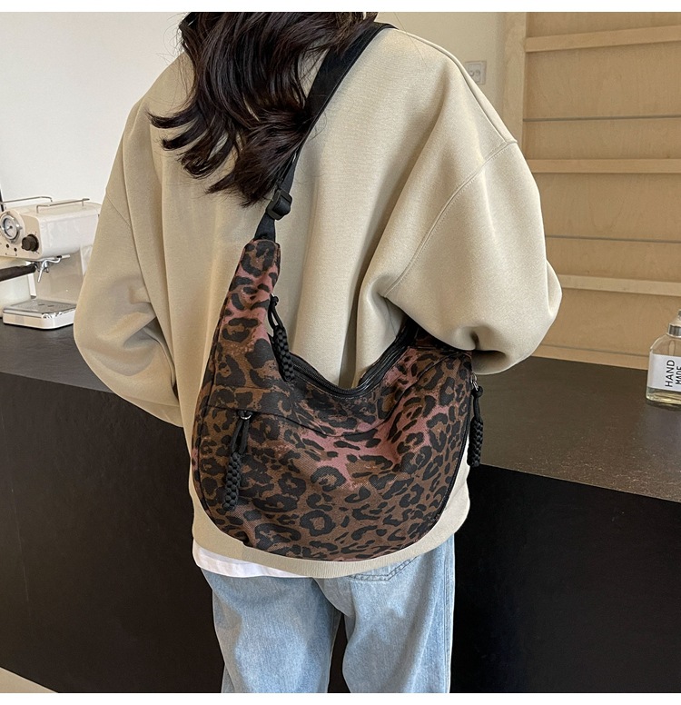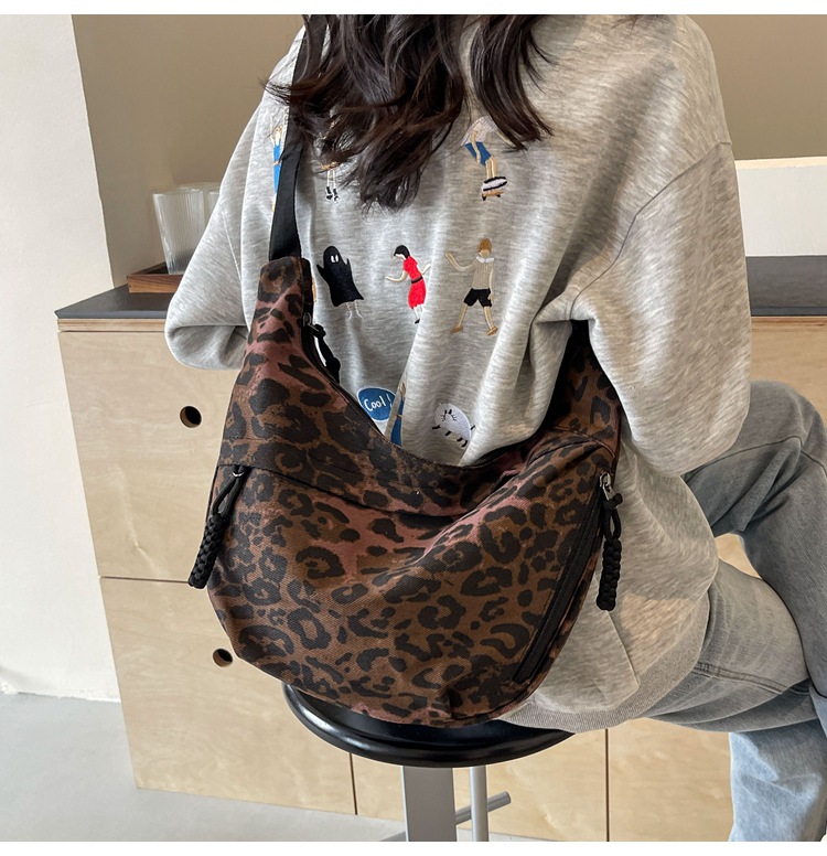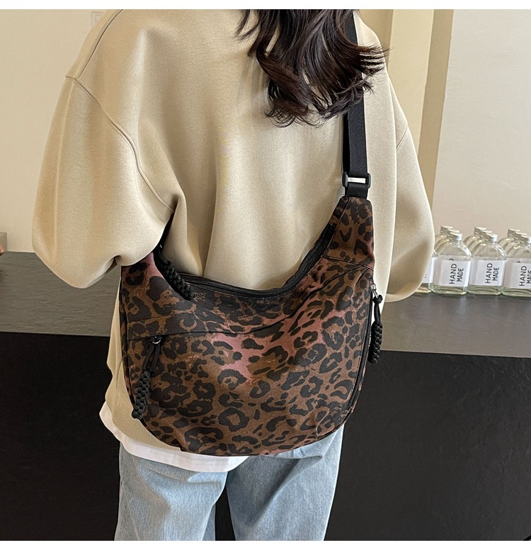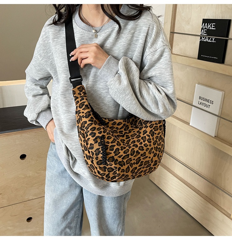 니치 레오파드 캔버스 만두 백 스포츠 스타일 캐주얼 올 매치 인기 천 가방 휴대용 유행 어깨 크로스 백