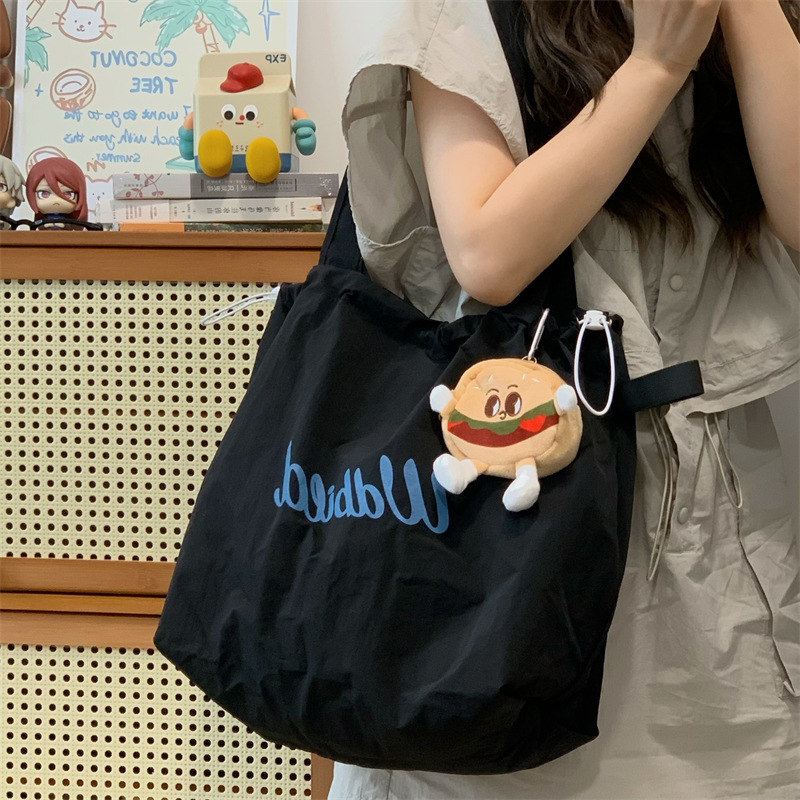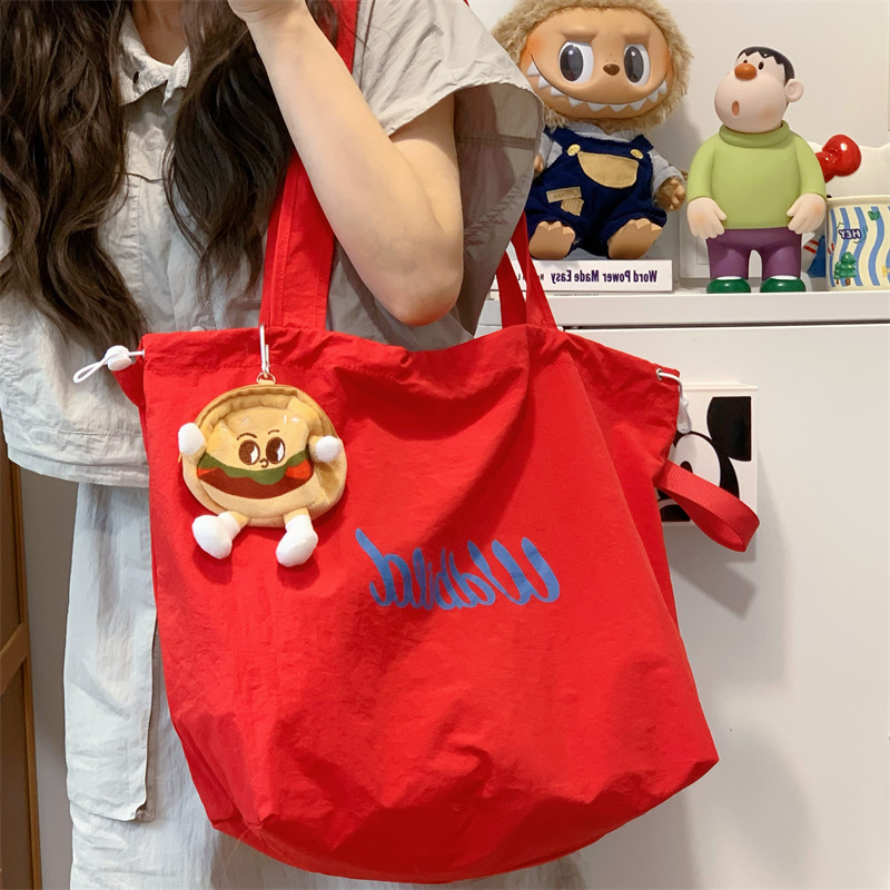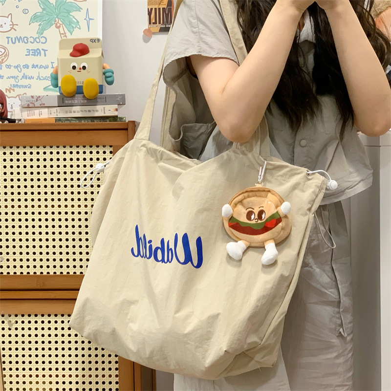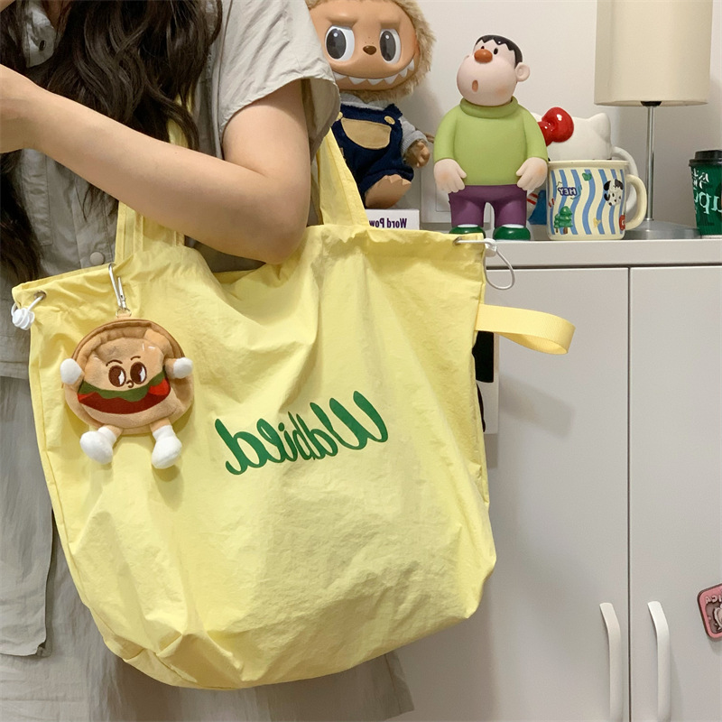휴식 토트 백 여성의 2024 새로운 스타일 드로우 스트링 캔버스 가방 통근 경량 핸드백 대용량 어깨 가방