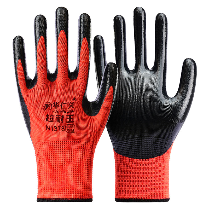 Huarenxing Nitrile Dipper 노동 보호 장갑 전체 접착제 오일저항하는 두꺼운 내마모성 보호 장갑 미끄럼 방지 노동 보호 장갑스토어 가기