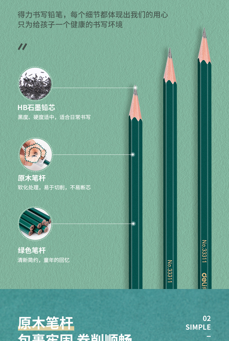 델리 연필 학생 2H 3310 유치원 hb 33311 자세 녹색 막대 육각형 막대 2B 시험 펜 33312