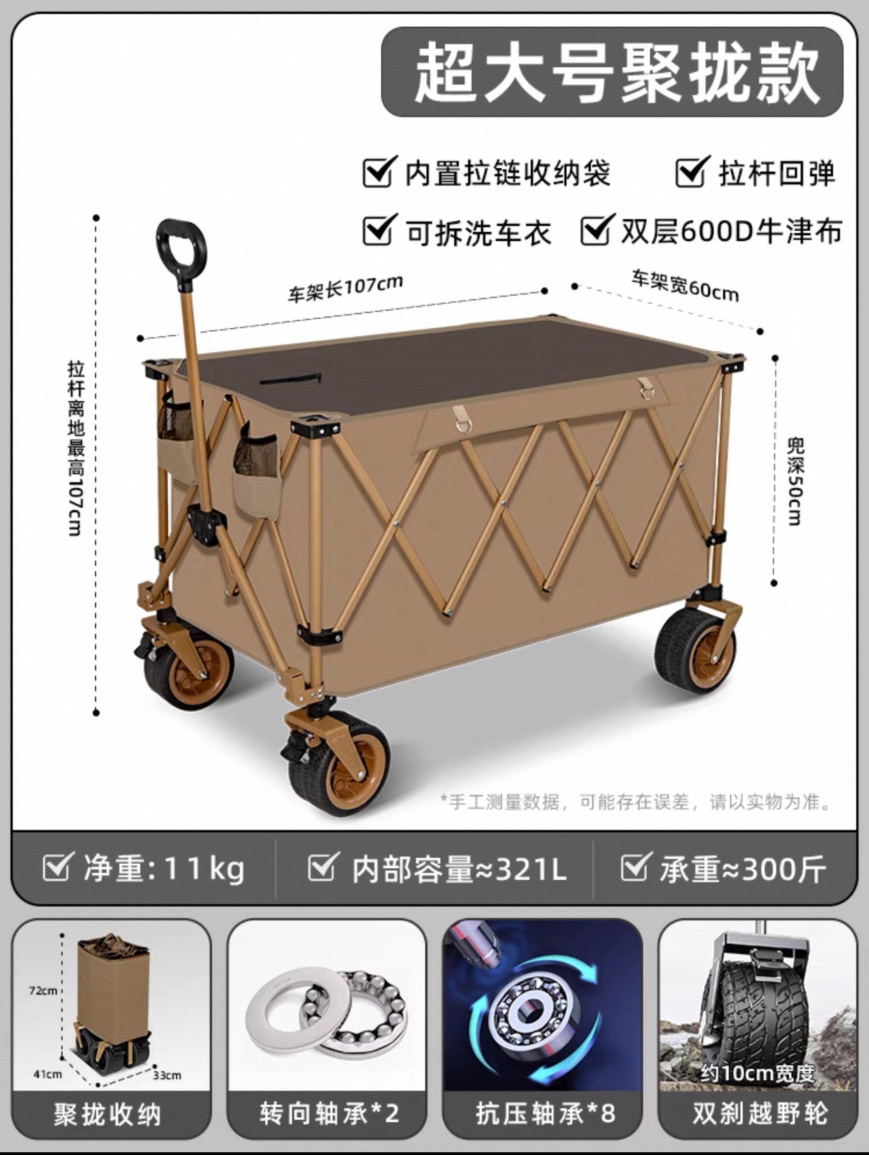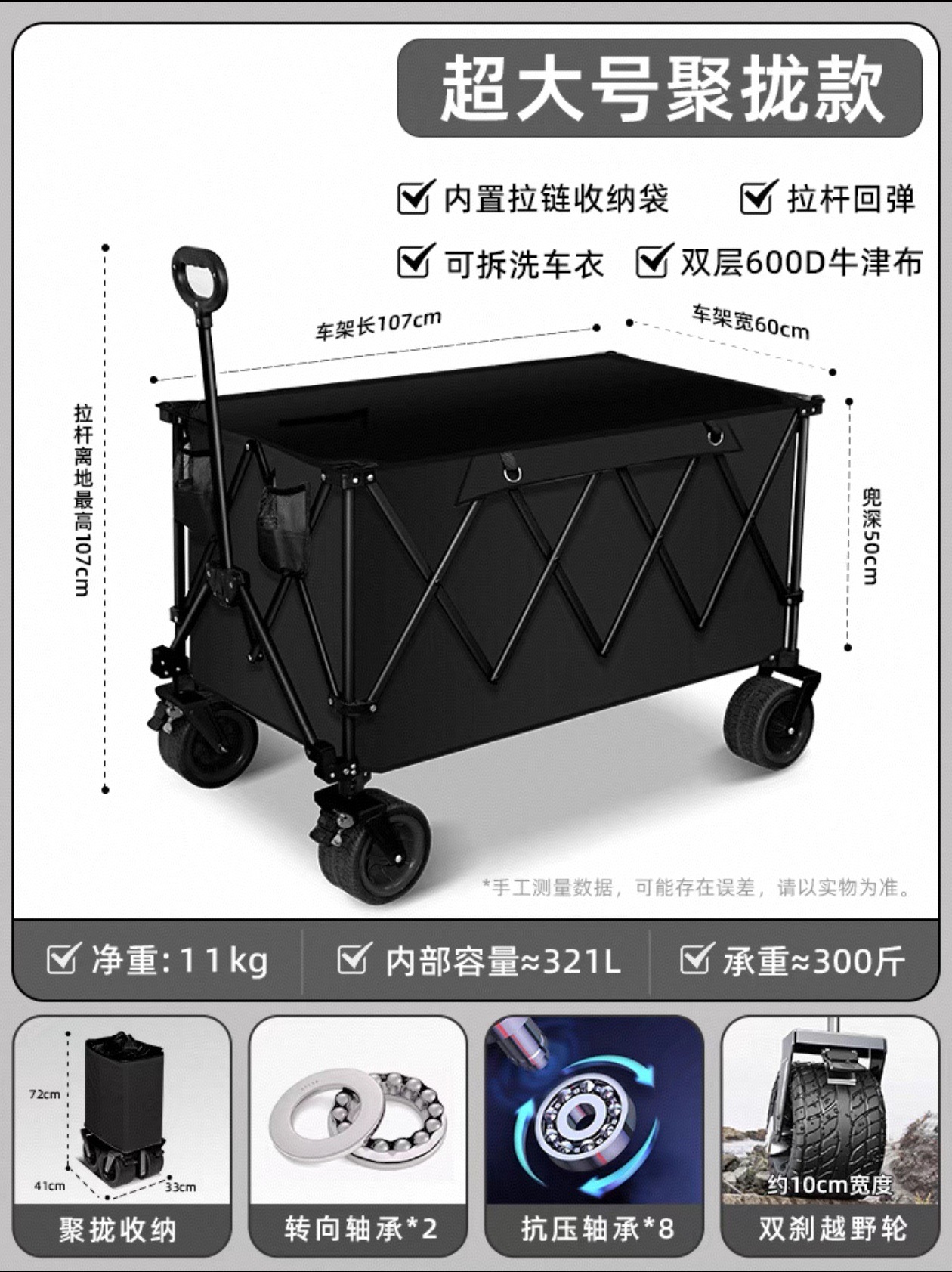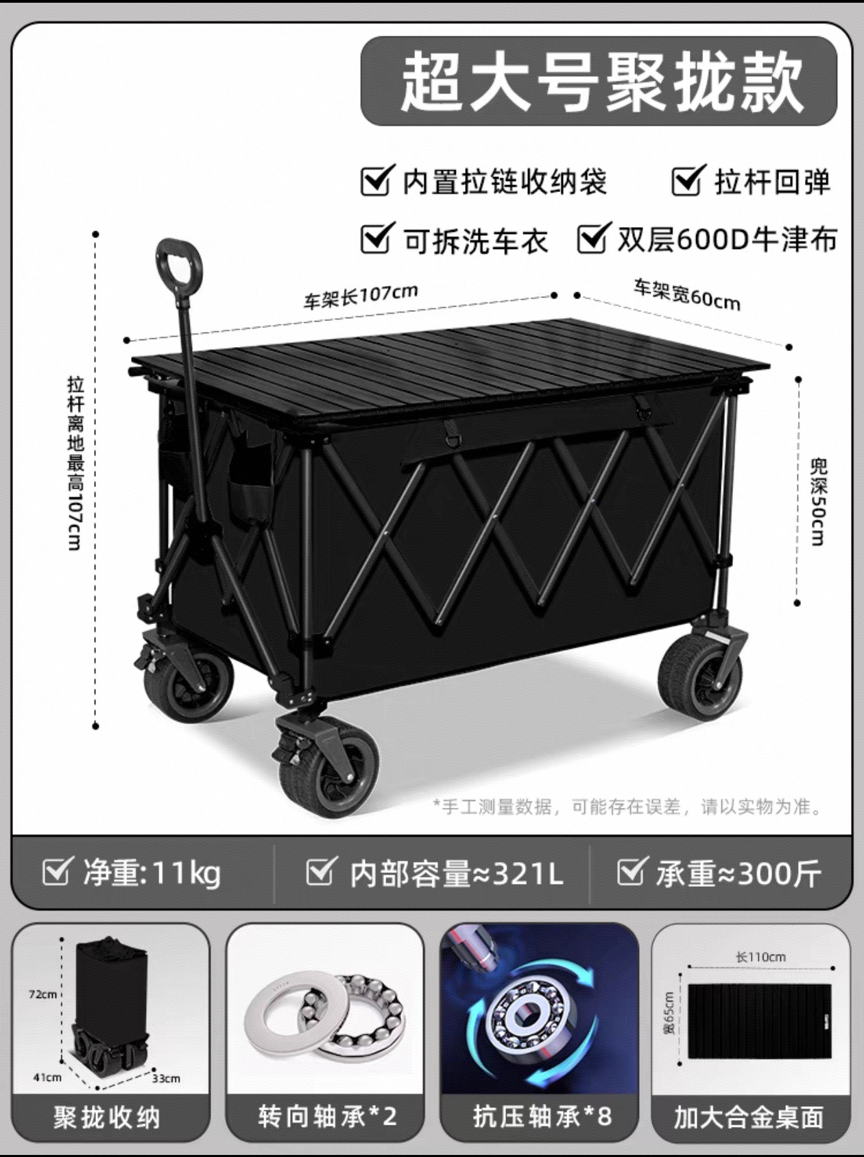 • 초대형 푸쉬업 트레일러 [익스트림 나이트 블랙] 용량 560 + 베어링 10개 업그레이드 + [탈착식 세탁 가능한 자동차 의류]