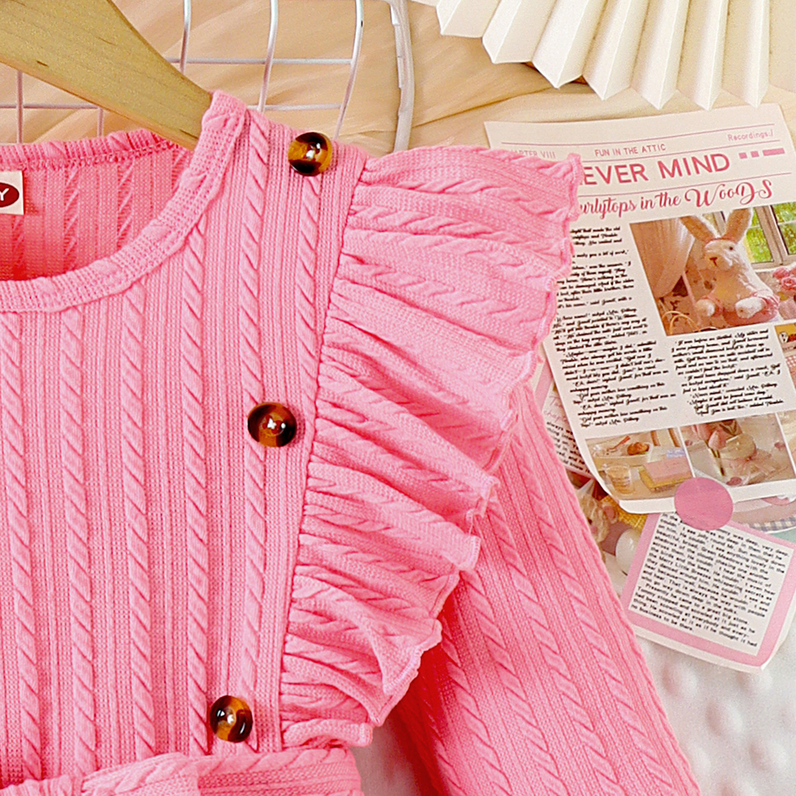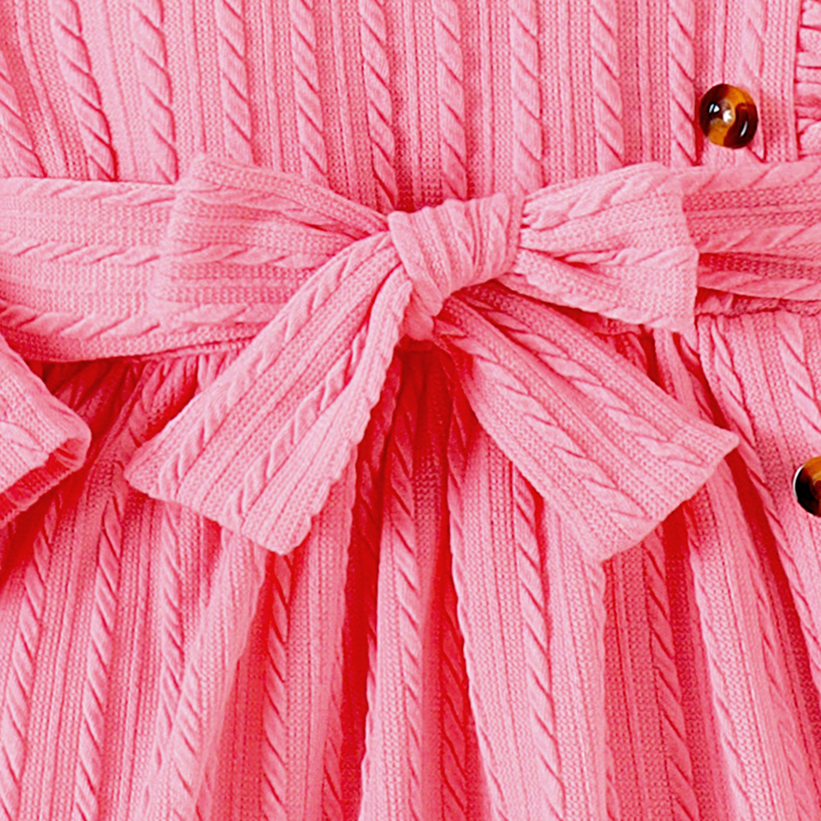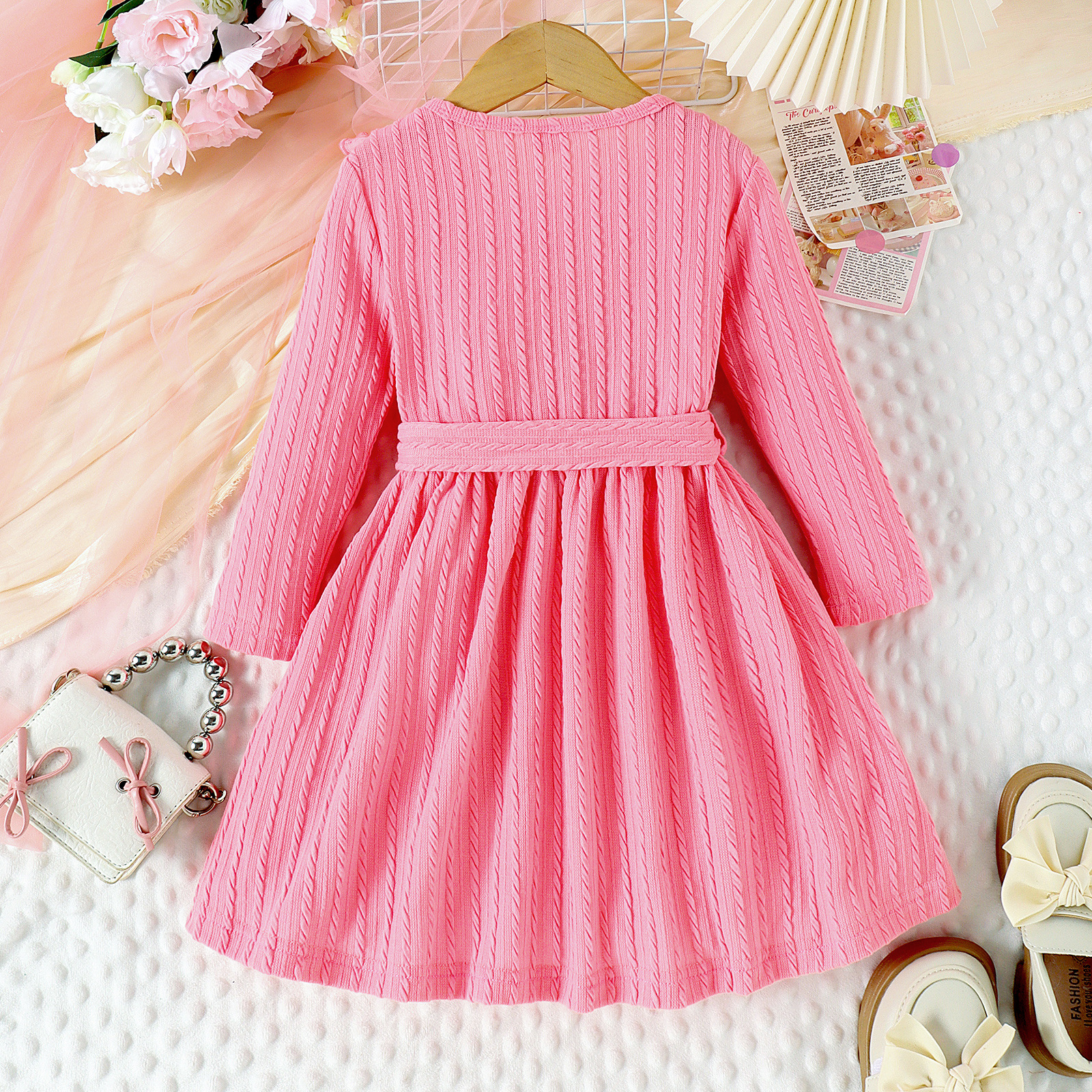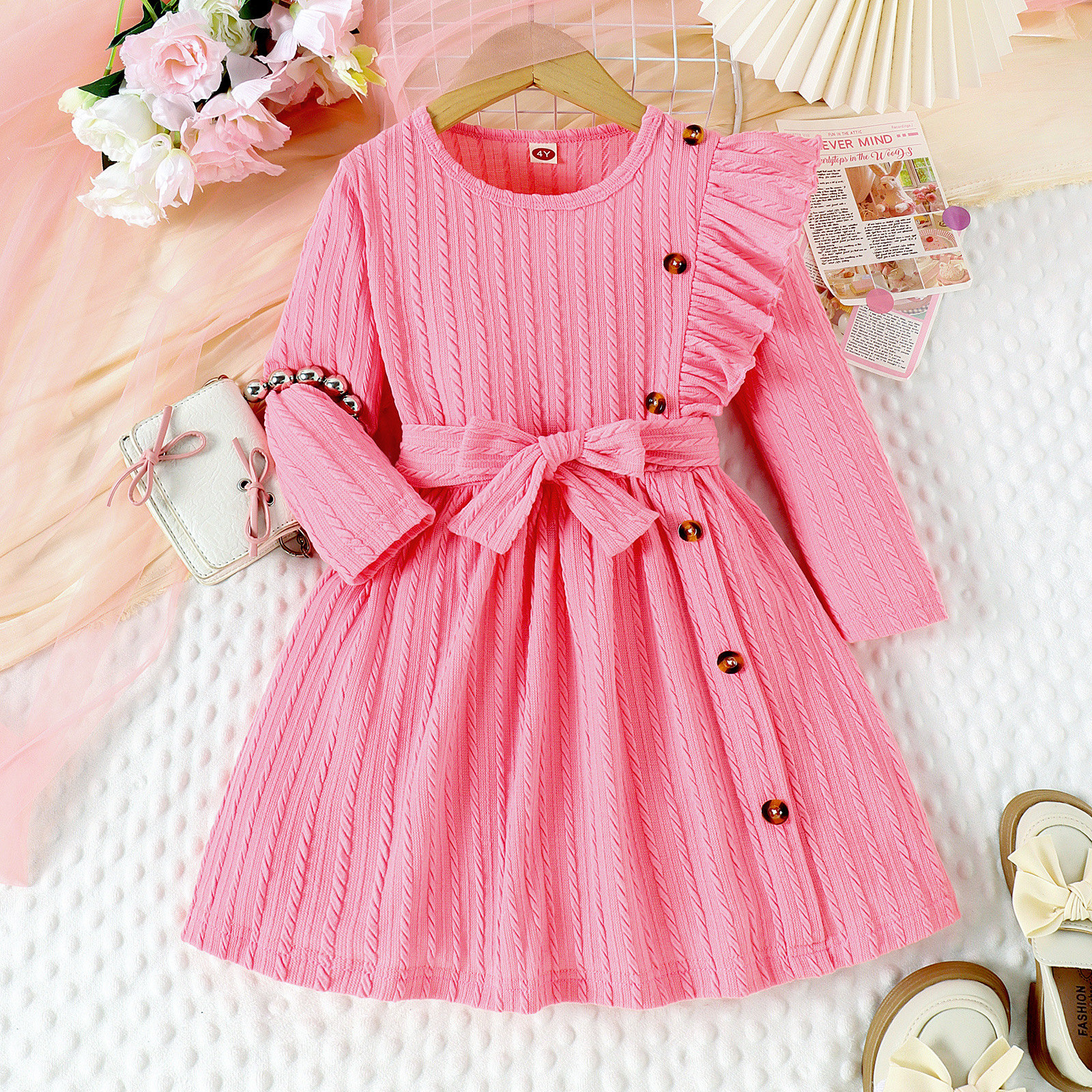 국경 간 대외 무역 아동복 유럽과 미국 가을과 겨울에 소녀 니트 피트 스트라이프 비스듬한 어깨 플라이 슬리브 브레스트 원피스 벨트 세트스토어 가기