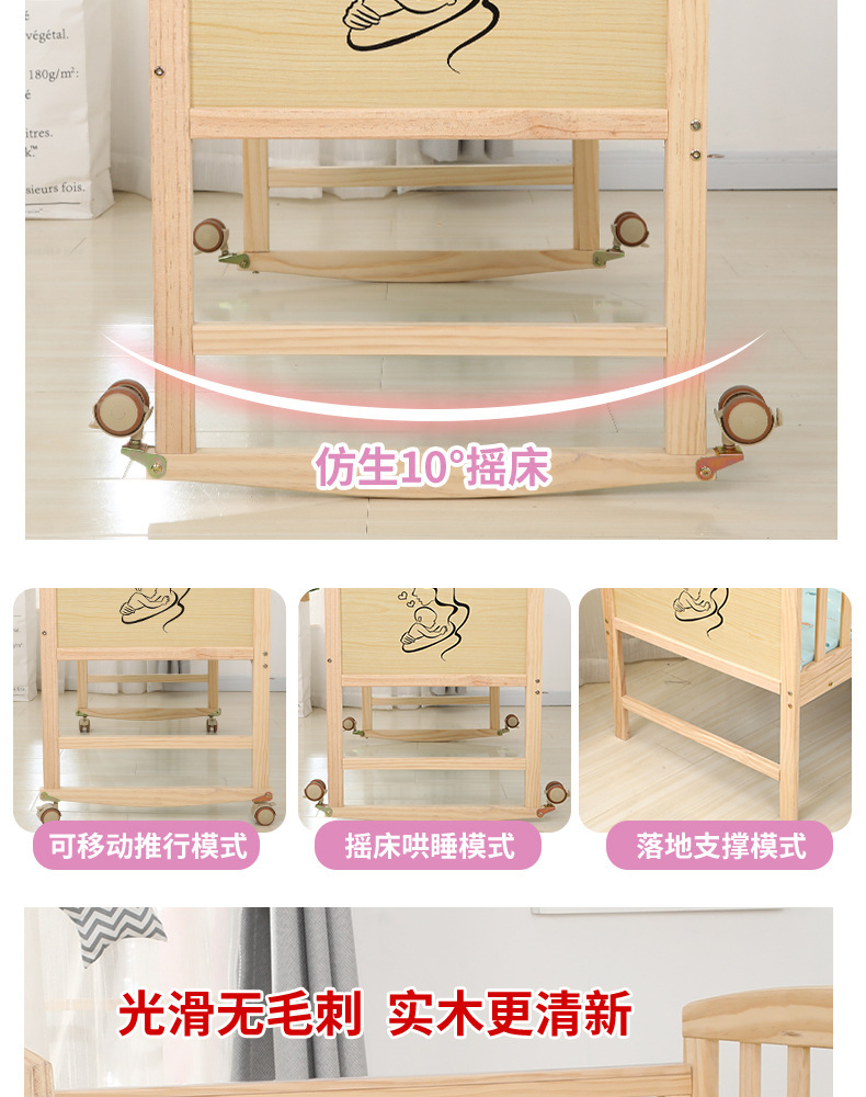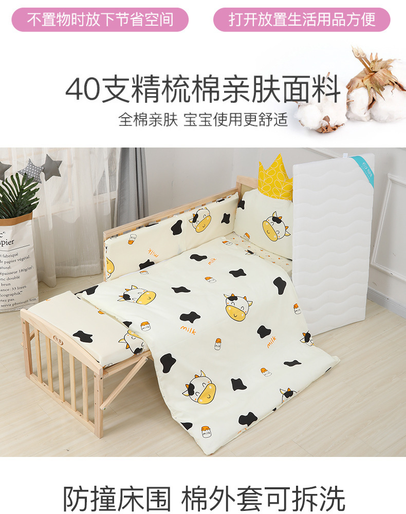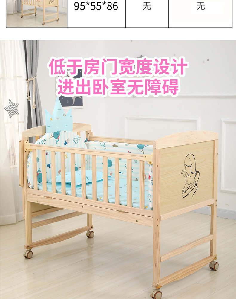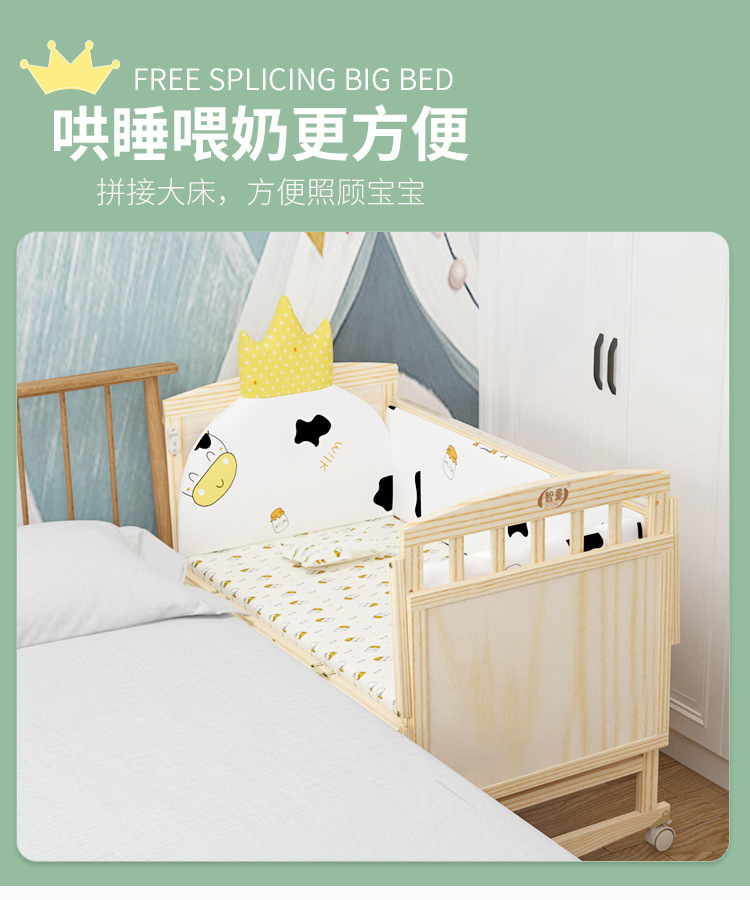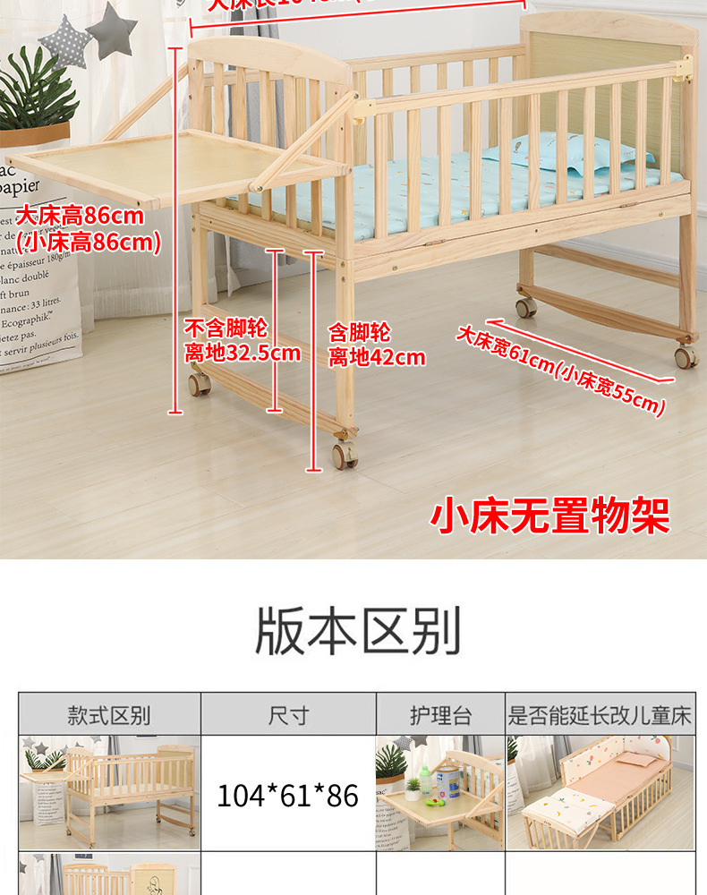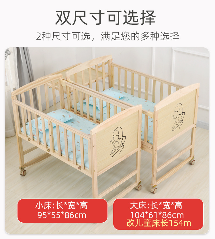 접이식 단단한 나무 침대 다기능 아기 침대 신생아 아기 모바일 요람 접합 아기 큰 침대 재고스토어 가기