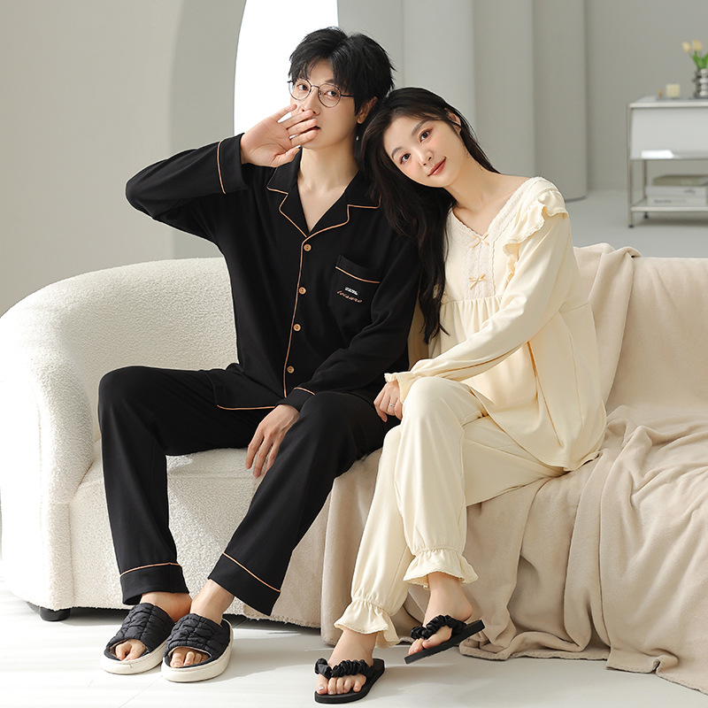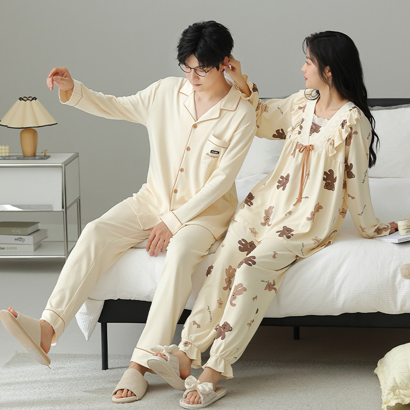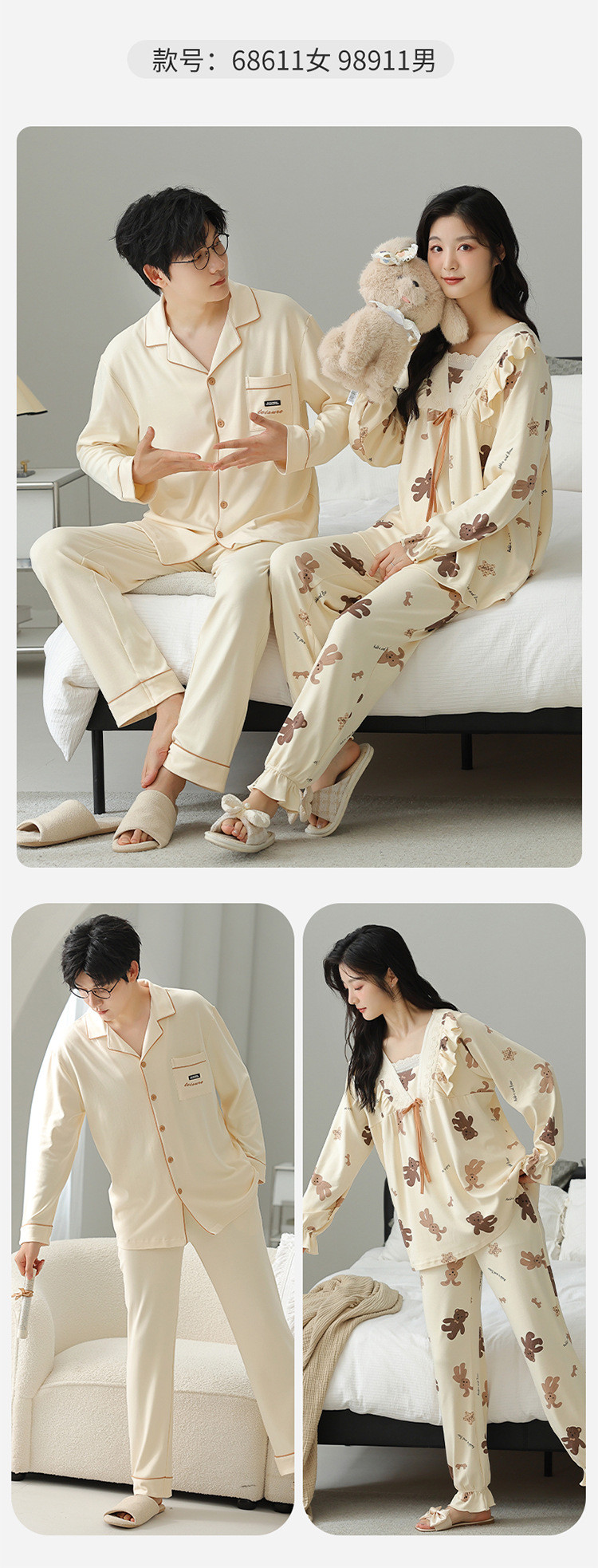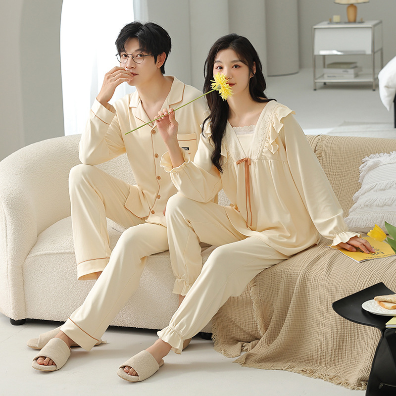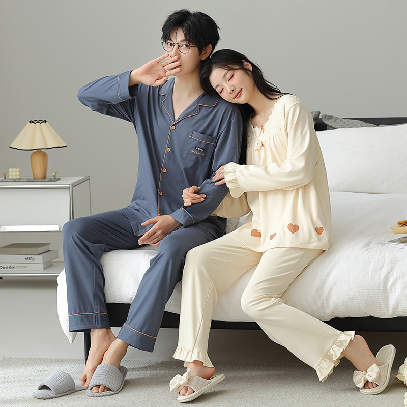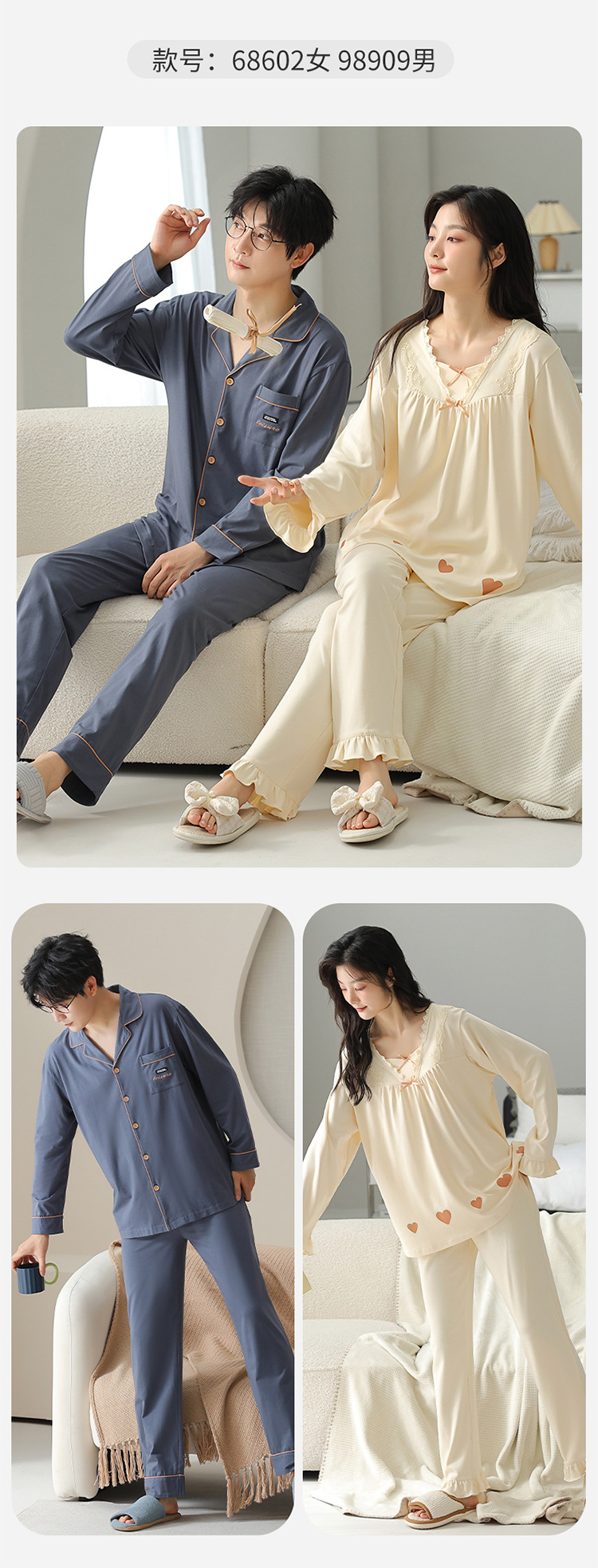 7A 항균 라지어스터치 코튼 커플 잠옷 여성용 여름 풀오버 궁궐풍 가디건 남성용 홈웨어 세트 봄, 가을스토어 가기