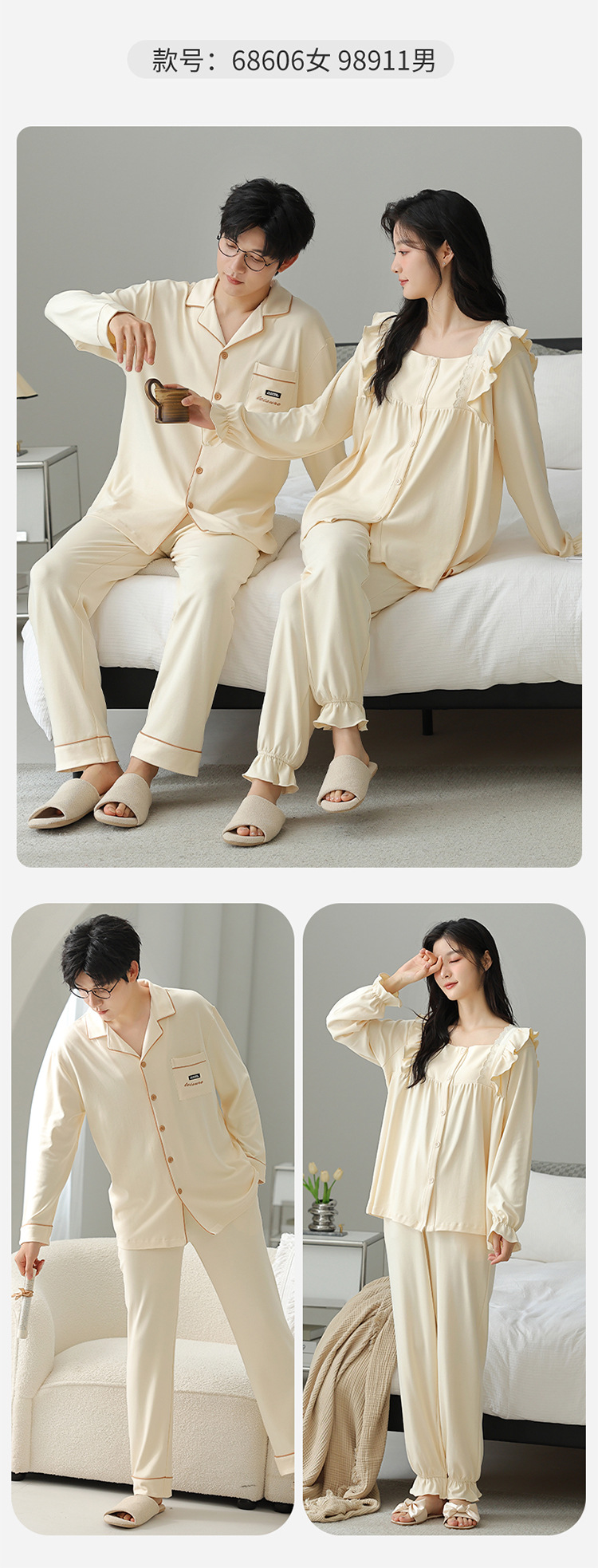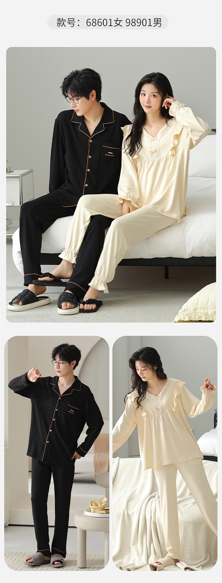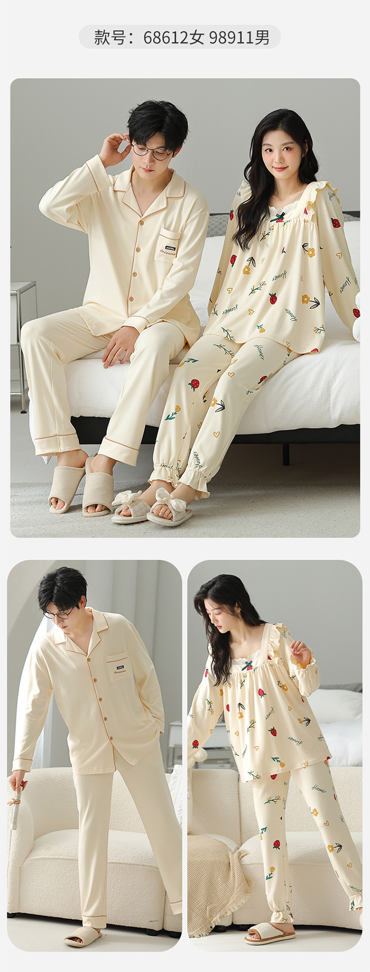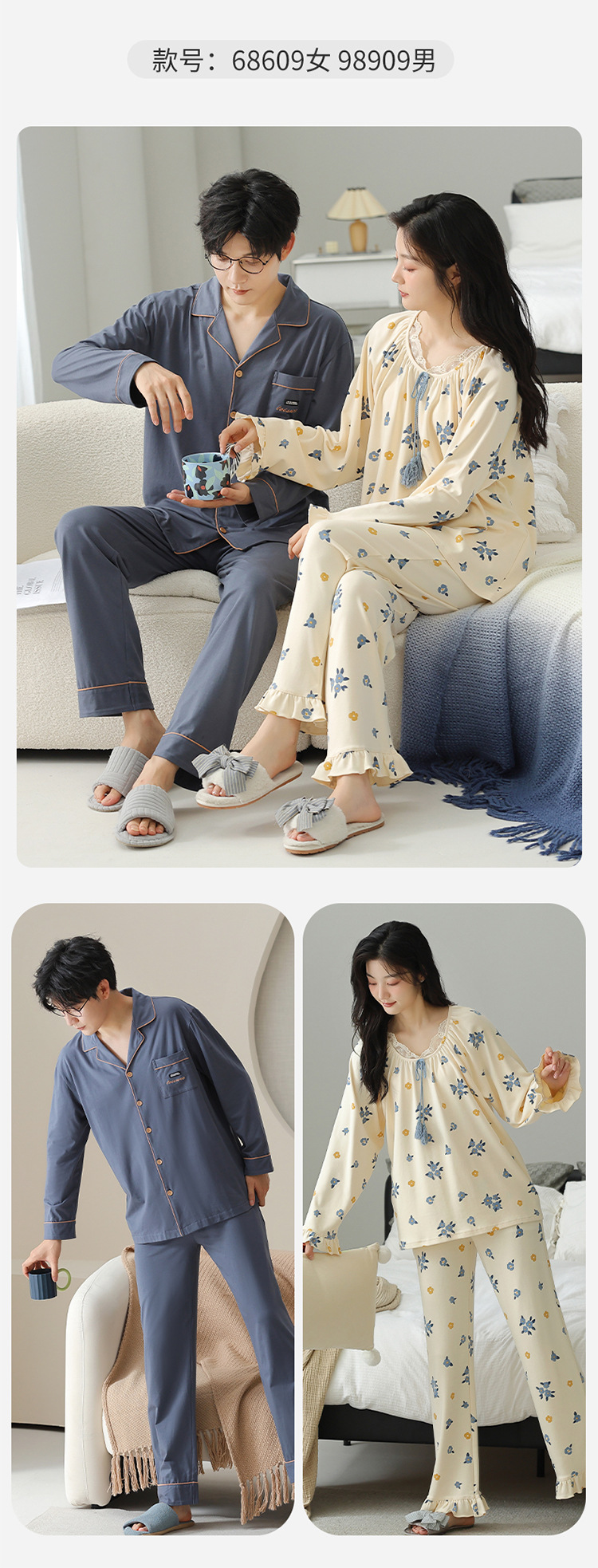 7A 항균 라지어스터치 코튼 커플 잠옷 여성용 여름 풀오버 궁궐풍 가디건 남성용 홈웨어 세트 봄, 가을스토어 가기