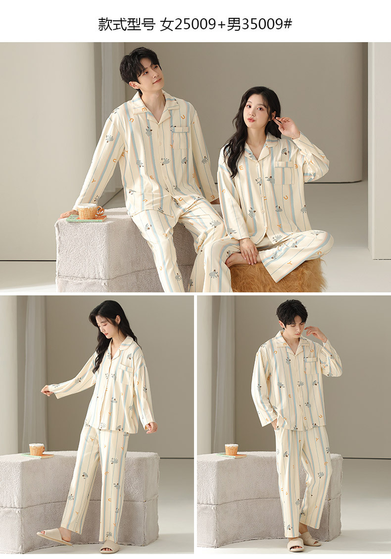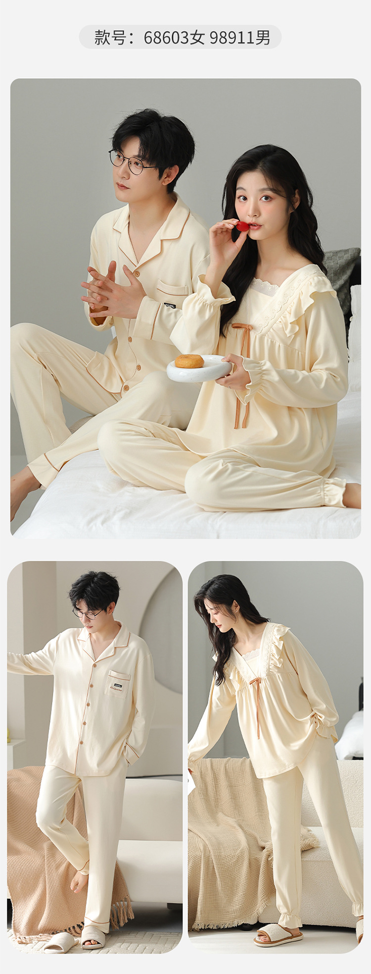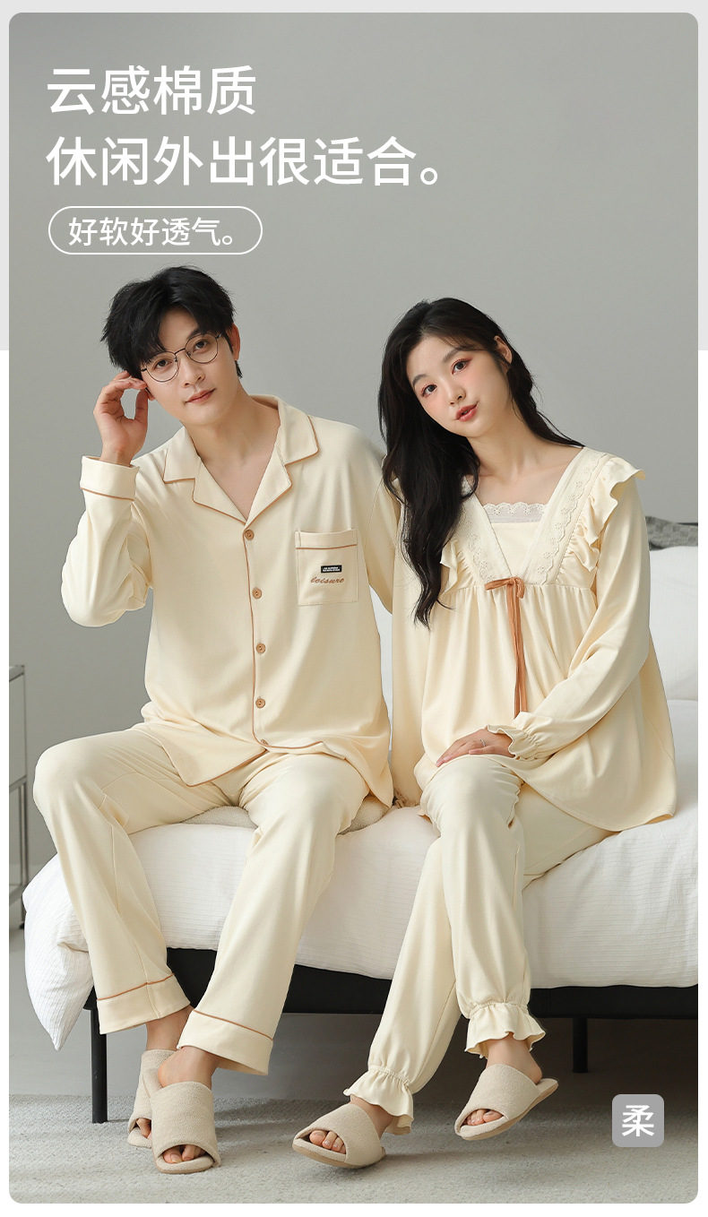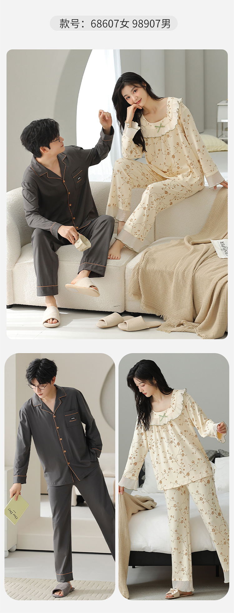 7A 항균 라지어스터치 코튼 커플 잠옷 여성용 여름 풀오버 궁궐풍 가디건 남성용 홈웨어 세트 봄, 가을스토어 가기