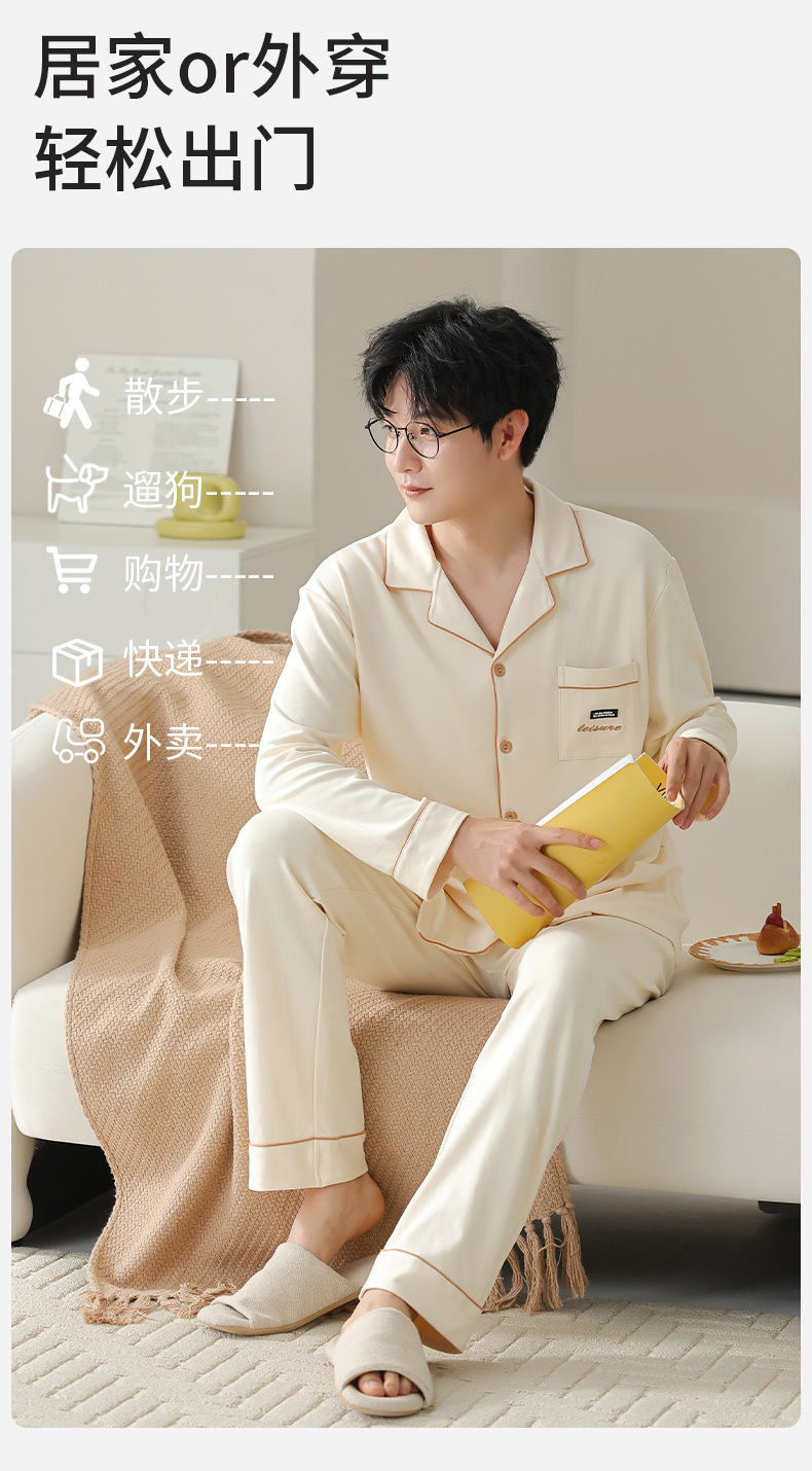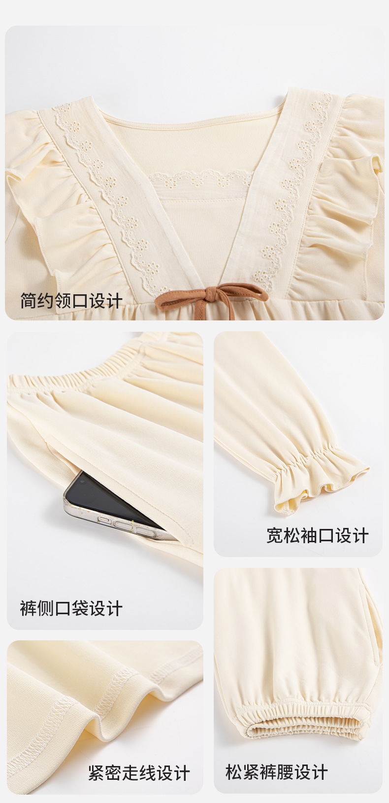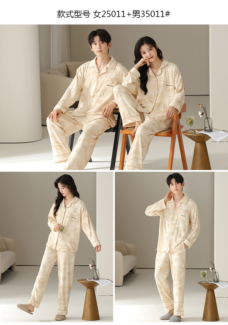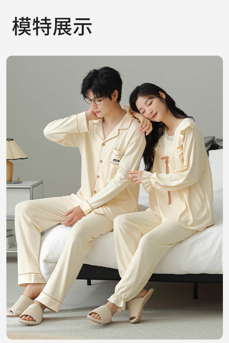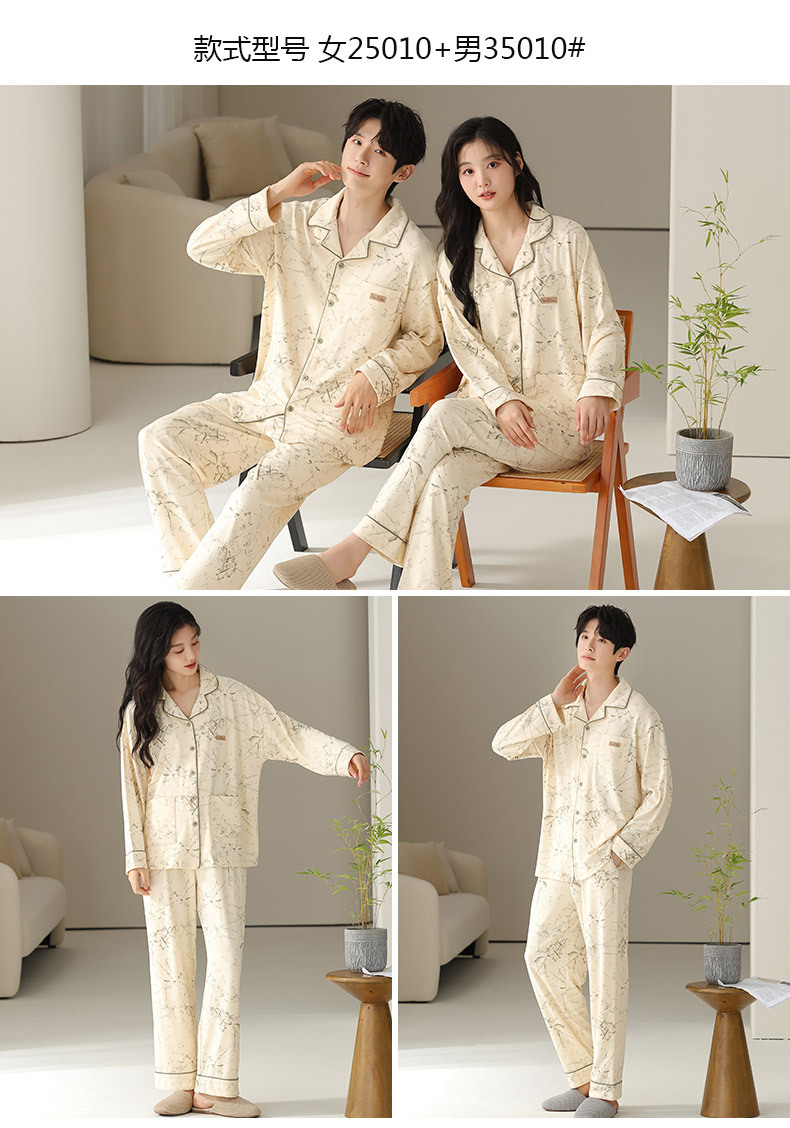 7A 항균 라지어스터치 코튼 커플 잠옷 여성용 여름 풀오버 궁궐풍 가디건 남성용 홈웨어 세트 봄, 가을스토어 가기