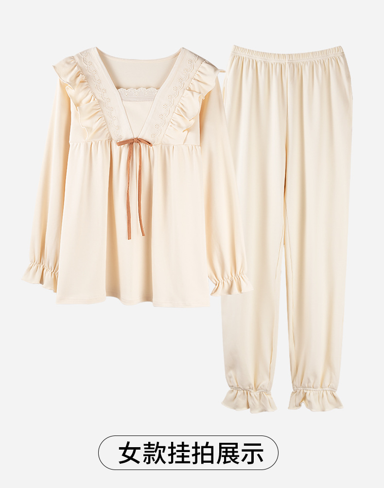 7A 항균 라지어스터치 코튼 커플 잠옷 여성용 여름 풀오버 궁궐풍 가디건 남성용 홈웨어 세트 봄, 가을
