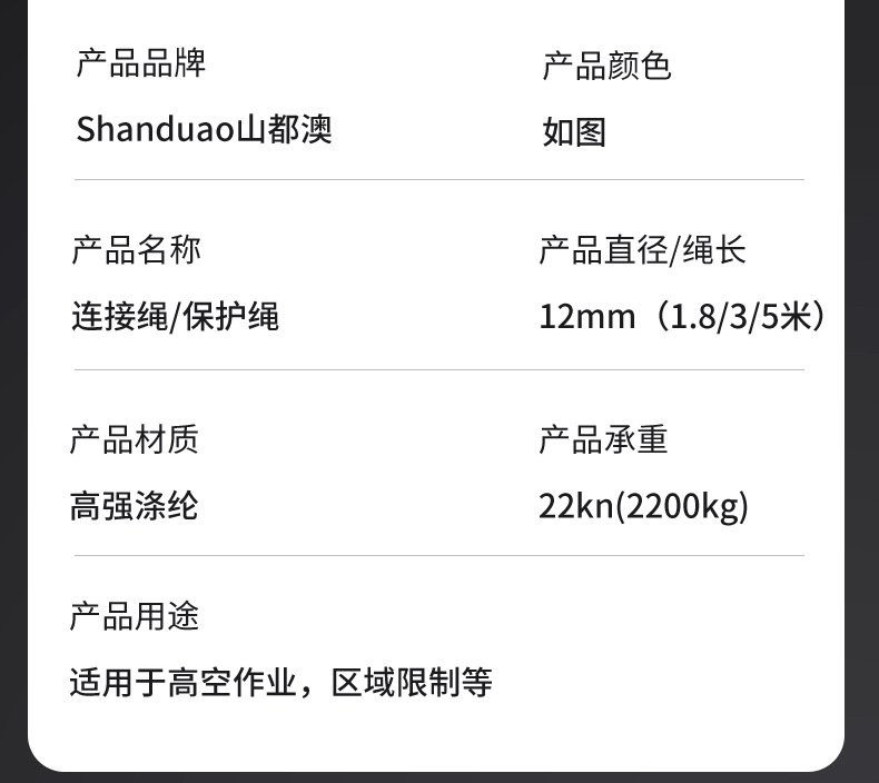 공중 작업 안전 로프 안전 로프 낙하 방지 로프 안전 벨트 연결 로프 야외 등산 에어컨 설치 로프