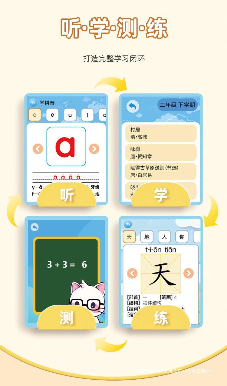 Ju Ai Xiong 포켓 학습 Bao 유치원 초등 학교 주의 휴대 전화 눈 보호 지능형 ai 교과서 병음 언어 영어 전기스토어 가기