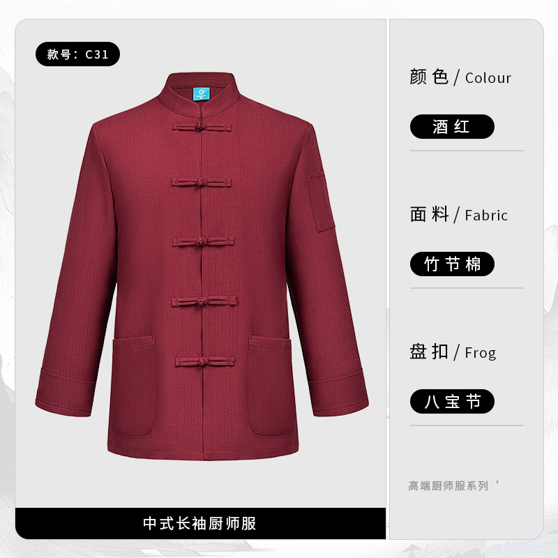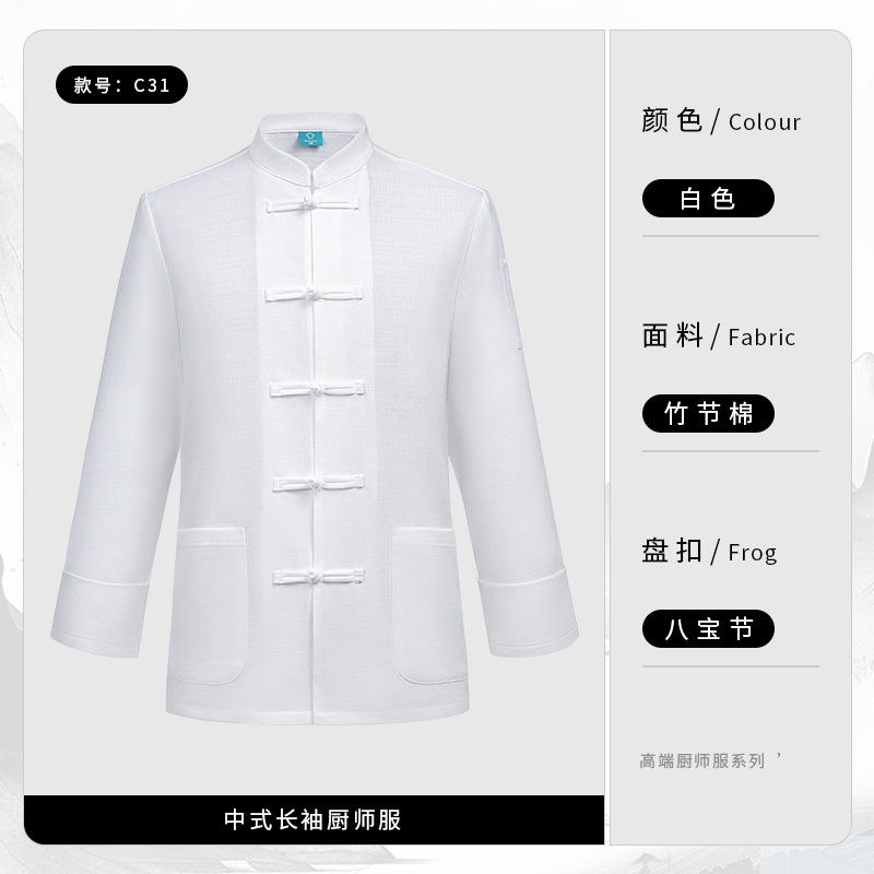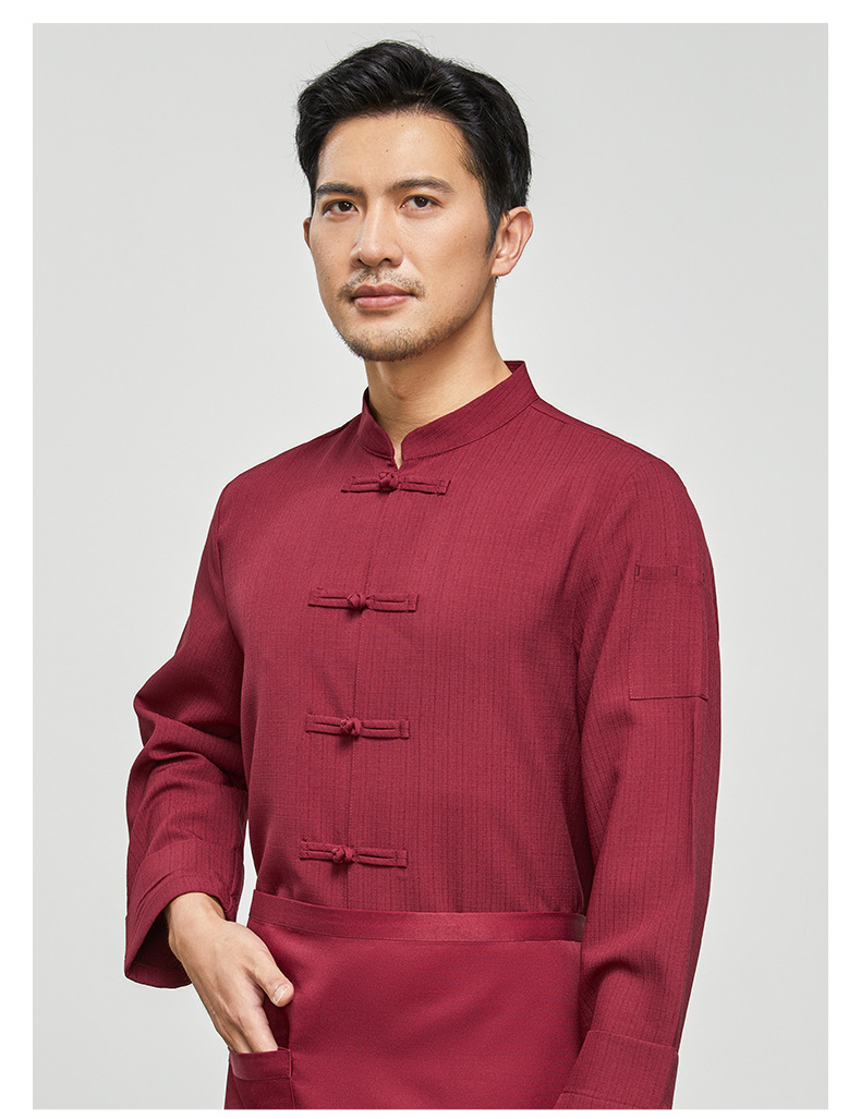 중국 스타일의 천 버클 셰프 옷 긴팔 슬럽 코튼 린넨 케이터링 주방 작업 옷 가을과 겨울 중국 스타일 플러스 비료