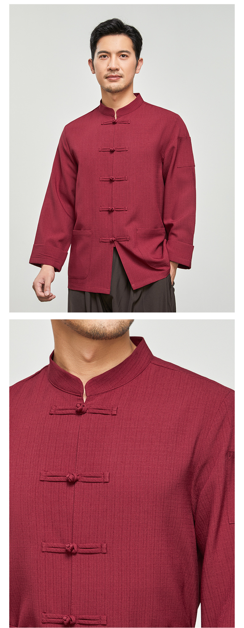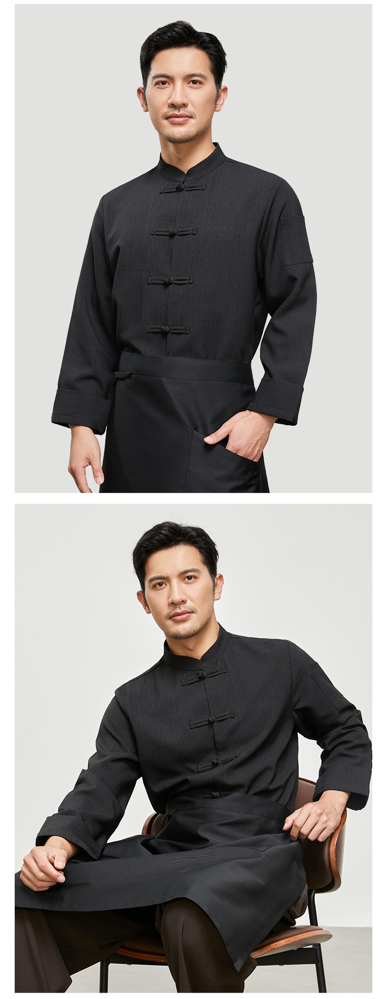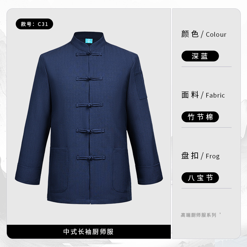 중국 스타일의 천 버클 셰프 옷 긴팔 슬럽 코튼 린넨 케이터링 주방 작업 옷 가을과 겨울 중국 스타일 플러스 비료스토어 가기