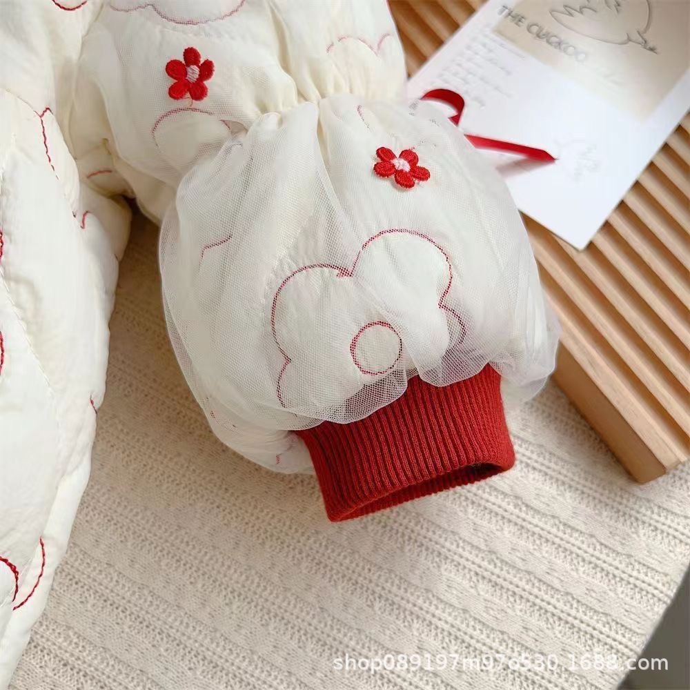 아기의 원피스 옷면 얇은 면화 가을과 겨울 의류 아기 소녀 슈퍼 귀여운 공주 외국 스타일의 따뜻한면 패딩 재킷 외출스토어 가기