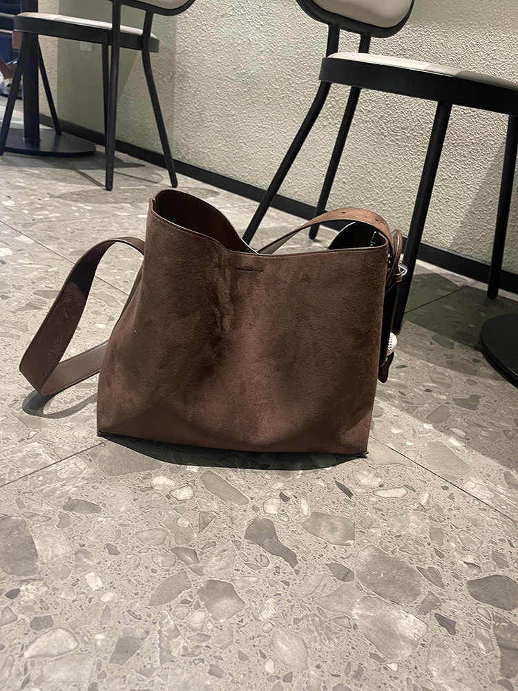 Lin Yan 여성 가방 2024 가을과 겨울 새로운 유행 대용량 스웨이드 프로스트 가죽 토트 백 모든 경기 통근 어깨 가방스토어 가기