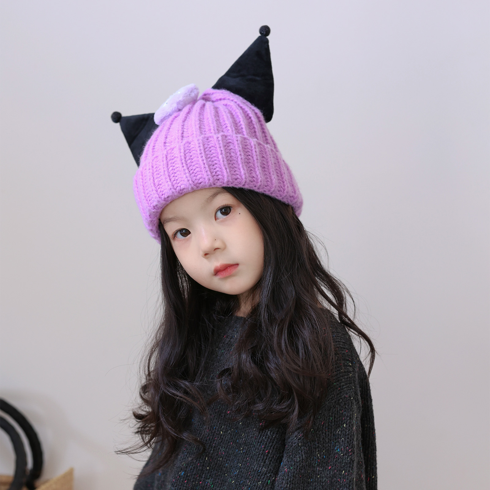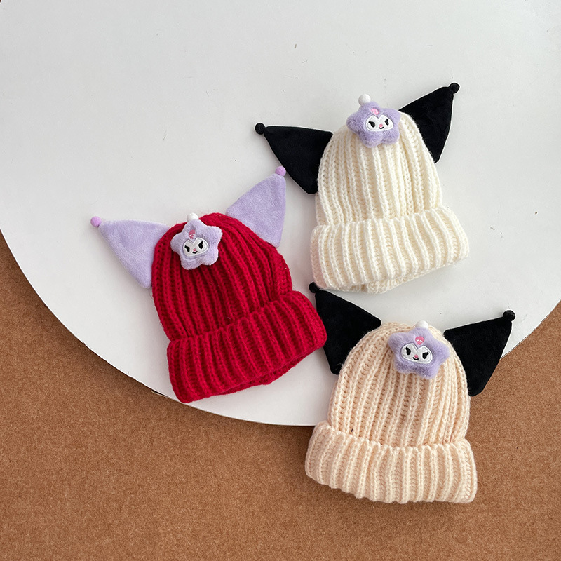 어린이 모자 겨울 소녀 만화 니트 양모 모자 소녀 방풍 따뜻한 귀 보호 캡 2443-20
