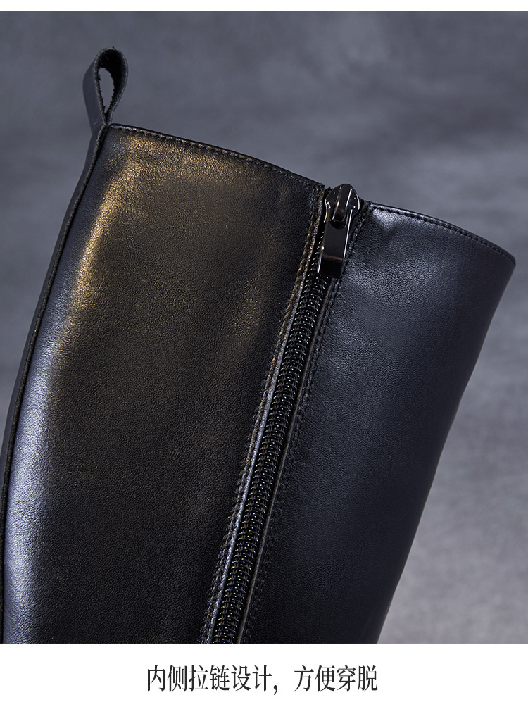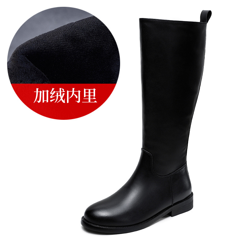 정품 가죽이지만 무릎 긴 부츠 여성의 2024 새로운 가을 및 겨울 옆 지퍼 슬리밍 플랫 롱 하이 기모 라이더 부츠스토어 가기