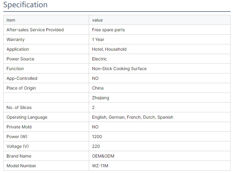 로고 맞춤형 핫 세일 2 피스 와플 메이커 비 스틱 베이커웨어 1200w 빠른 아침 오믈렛 스프레스토어 가기