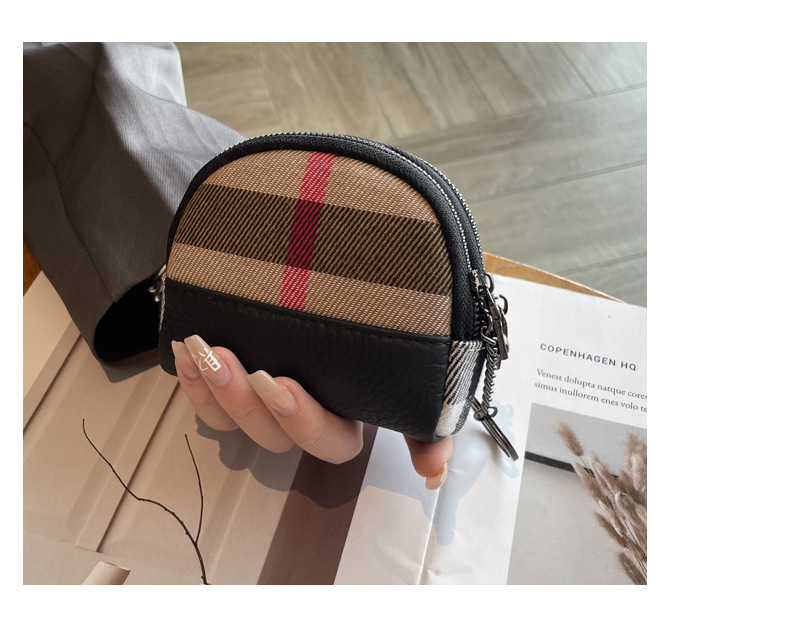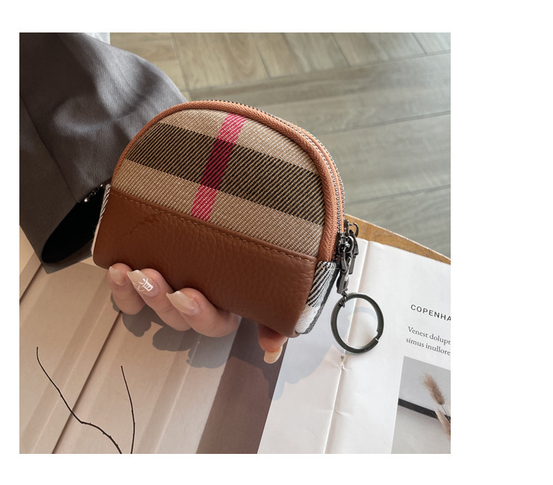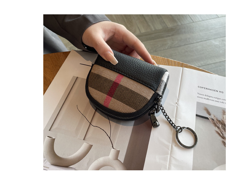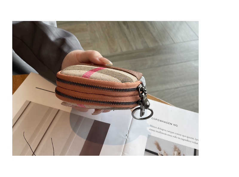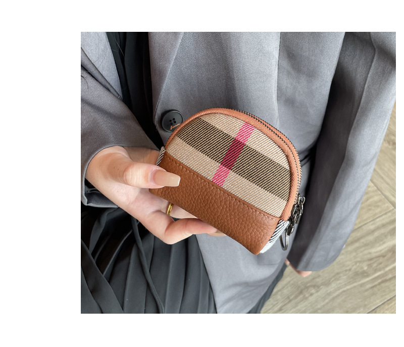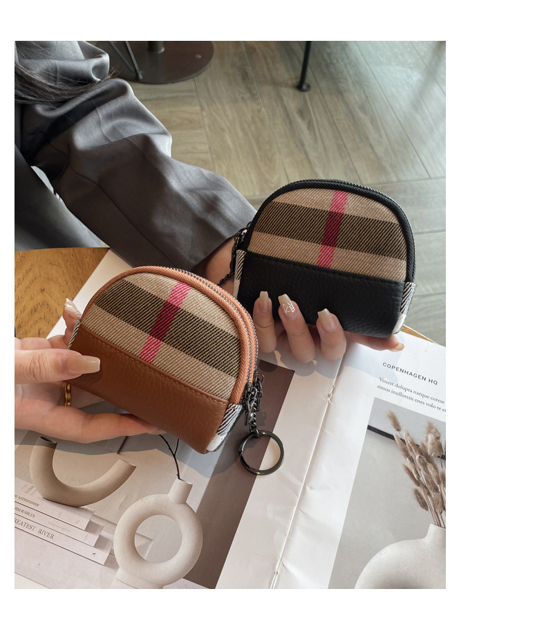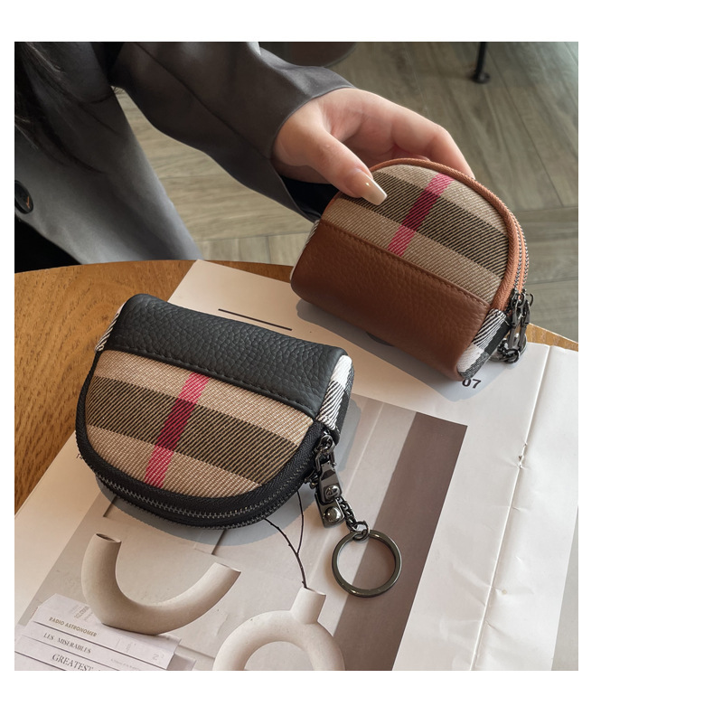 2024 새로운 캔버스 동전 지갑 여성용 격자 무늬 색상 대비 절묘한 미니 소형 저장 가방 지퍼 코인 키 백
