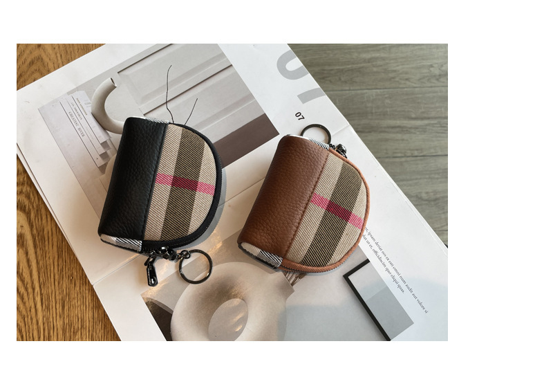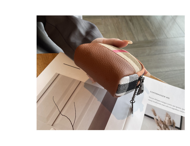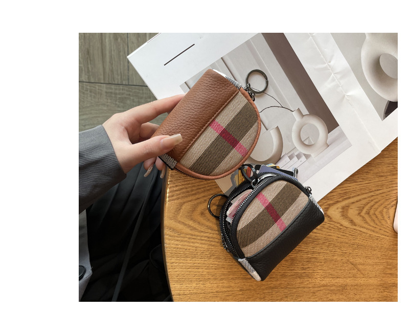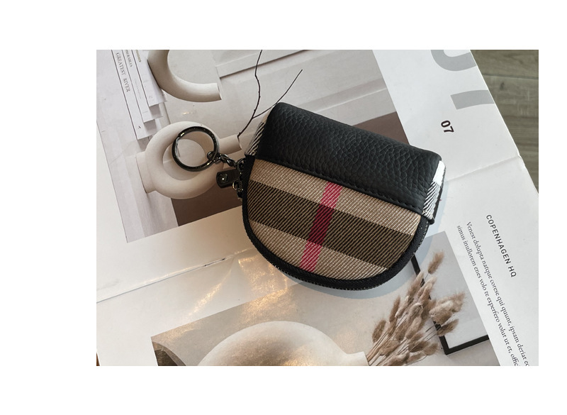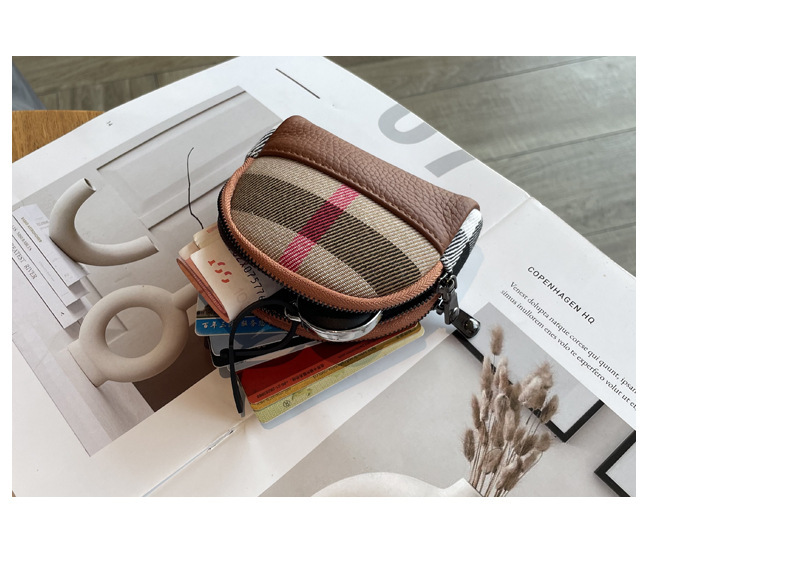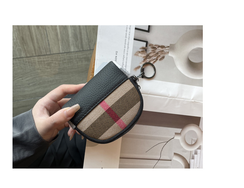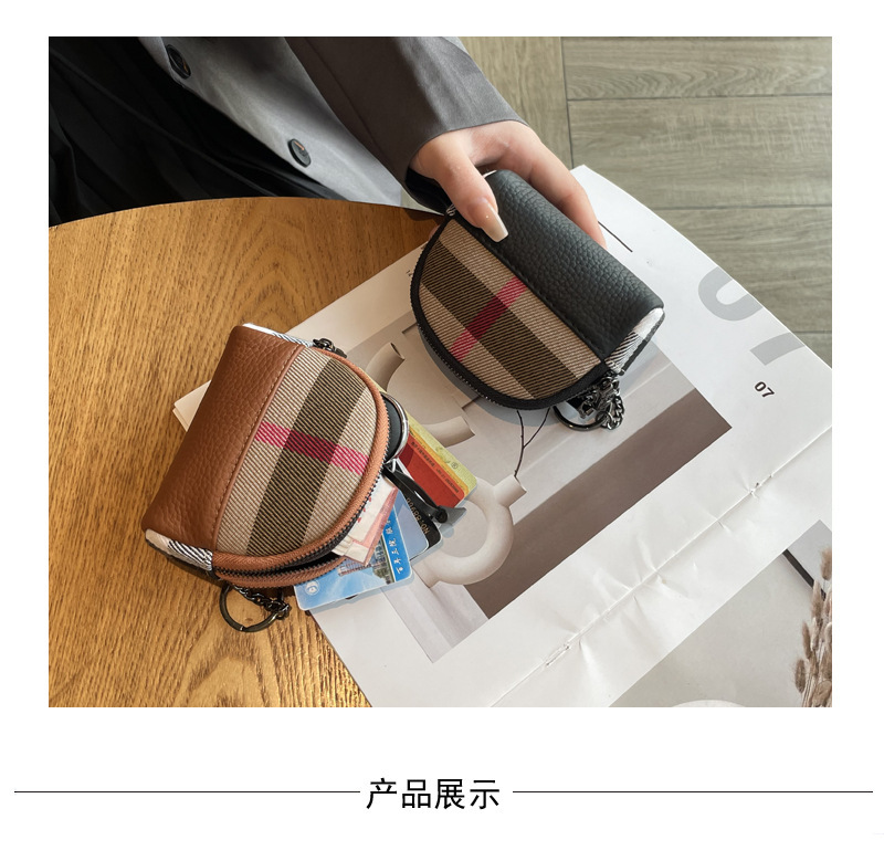 2024 새로운 캔버스 동전 지갑 여성용 격자 무늬 색상 대비 절묘한 미니 소형 저장 가방 지퍼 코인 키 백
