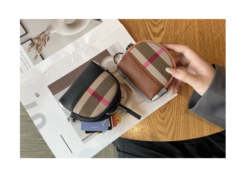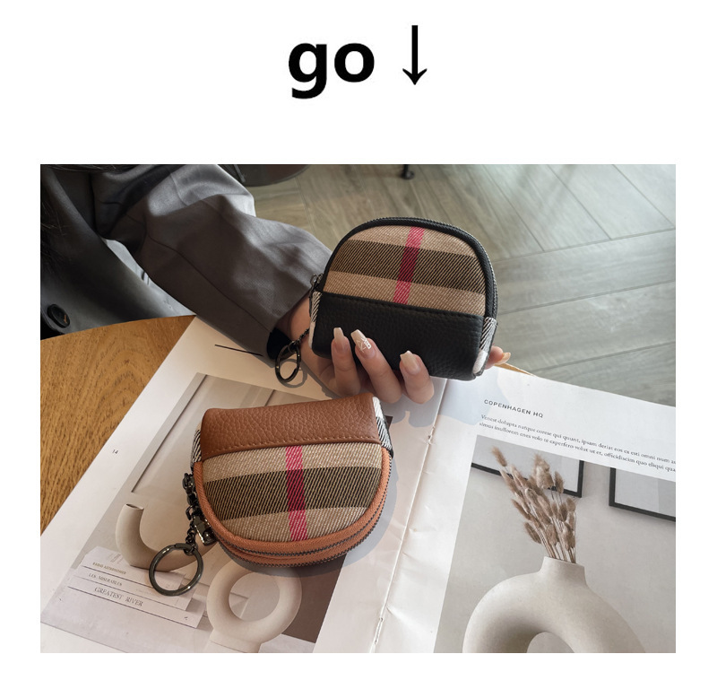 2024 새로운 캔버스 동전 지갑 여성용 격자 무늬 색상 대비 절묘한 미니 소형 저장 가방 지퍼 코인 키 백스토어 가기
