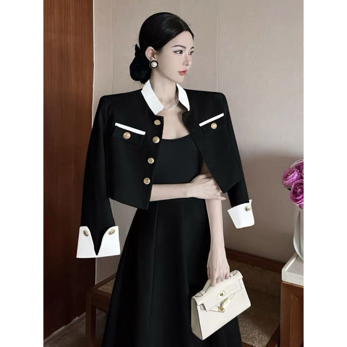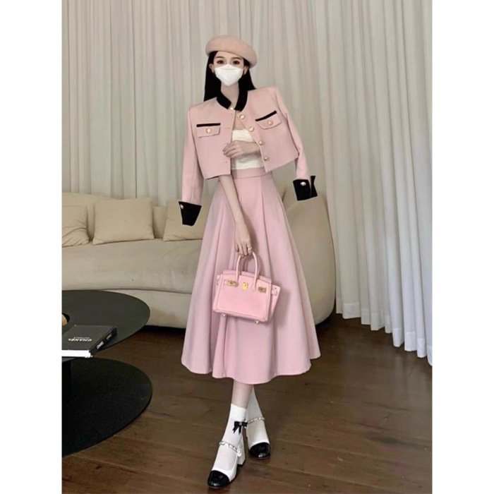 프랑스 스타일 샤넬 스타일 코트 스커트 봄과 가을 왕실 자매 사교계 통근 우아한 패션 투피스 세트 여성 의류스토어 가기
