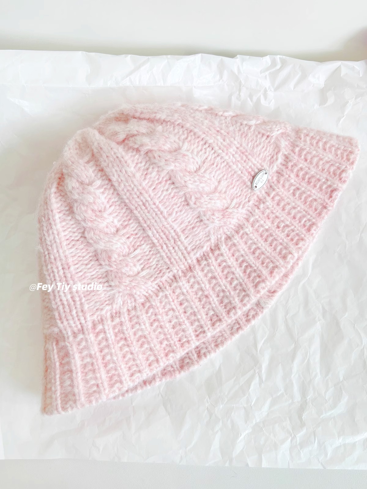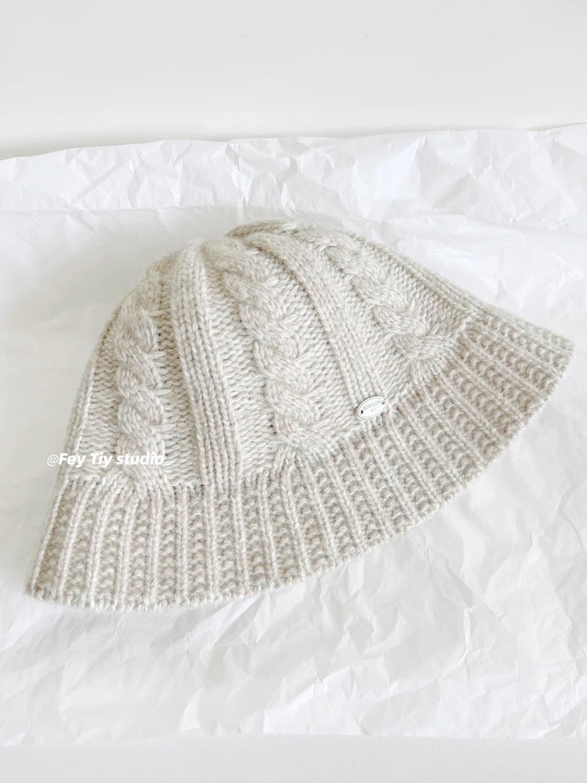 2025년 신상 영국 대학 스타일 디자인 케이블 니트 버킷햇 가을 겨울 신상 다용도 따뜻한 모직 모자스토어 가기