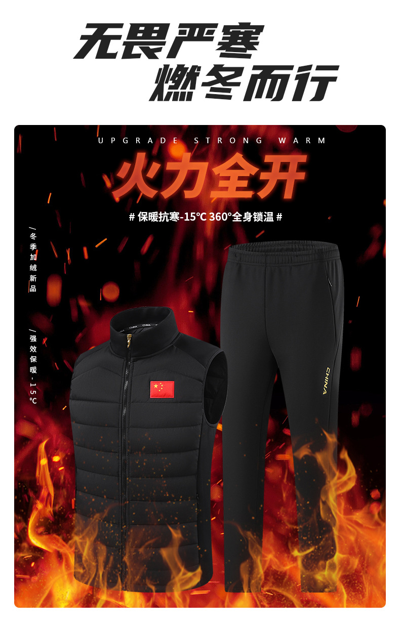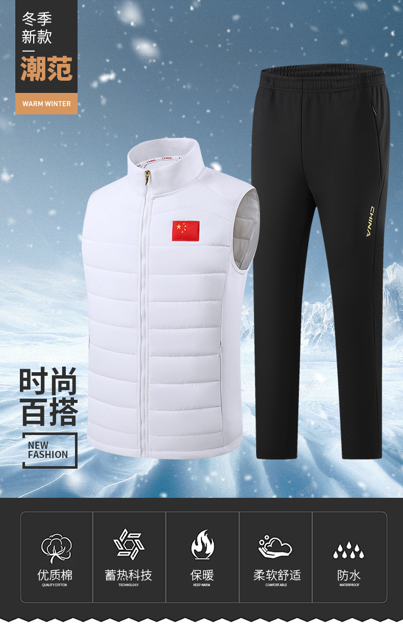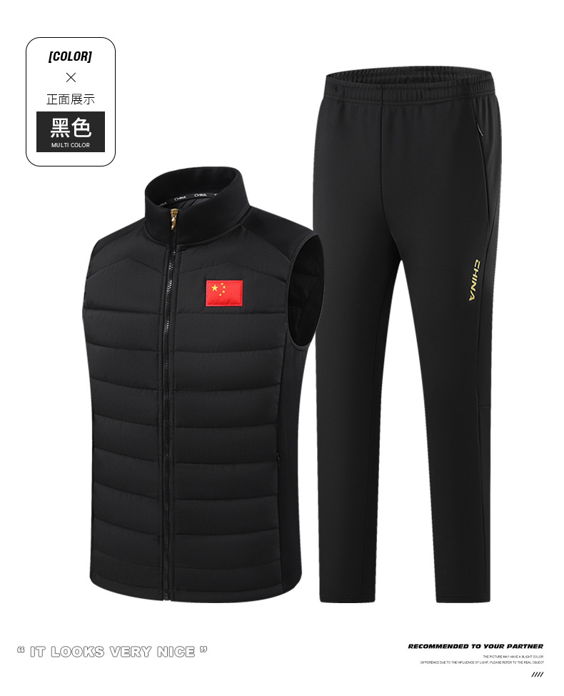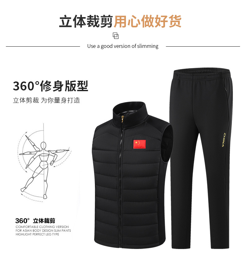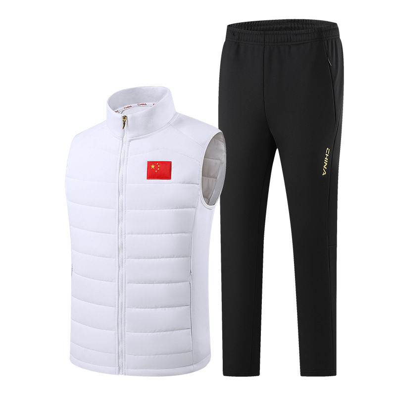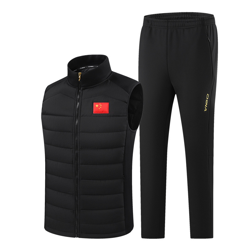 조끼 스포츠 세트 3 피스 세트 중국 팀 가을과 겨울 조끼 겨울 훈련 스포츠 학생 스포츠 레저 민소매 재킷