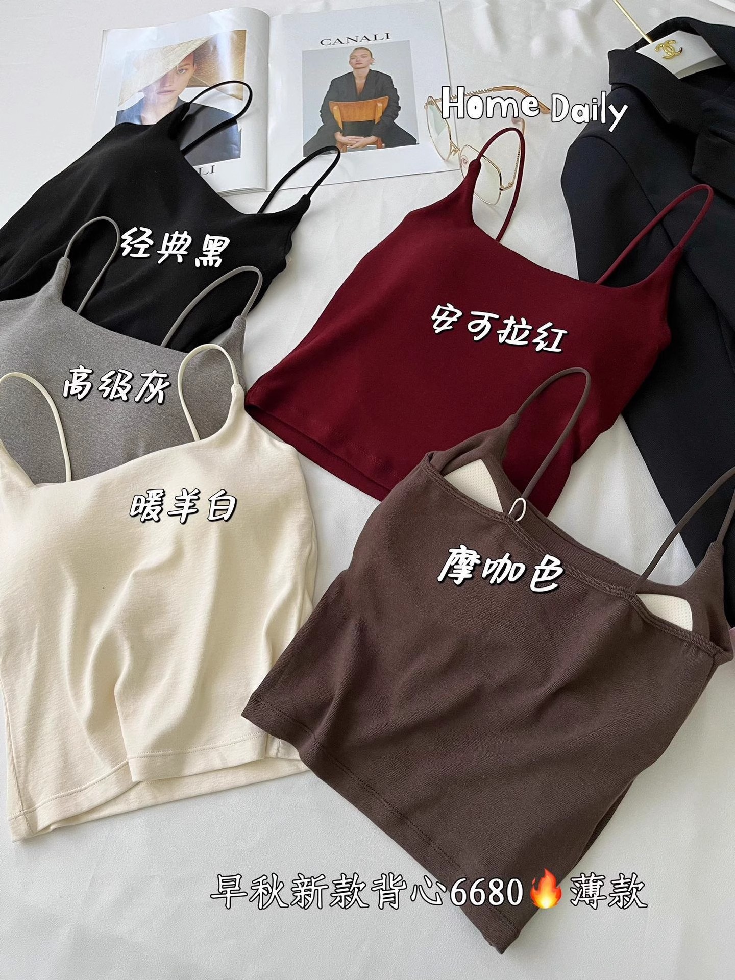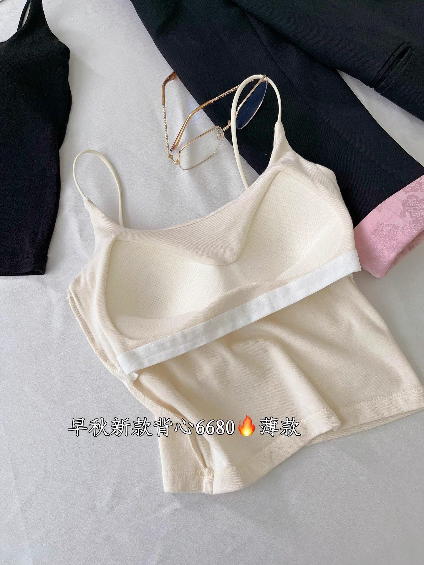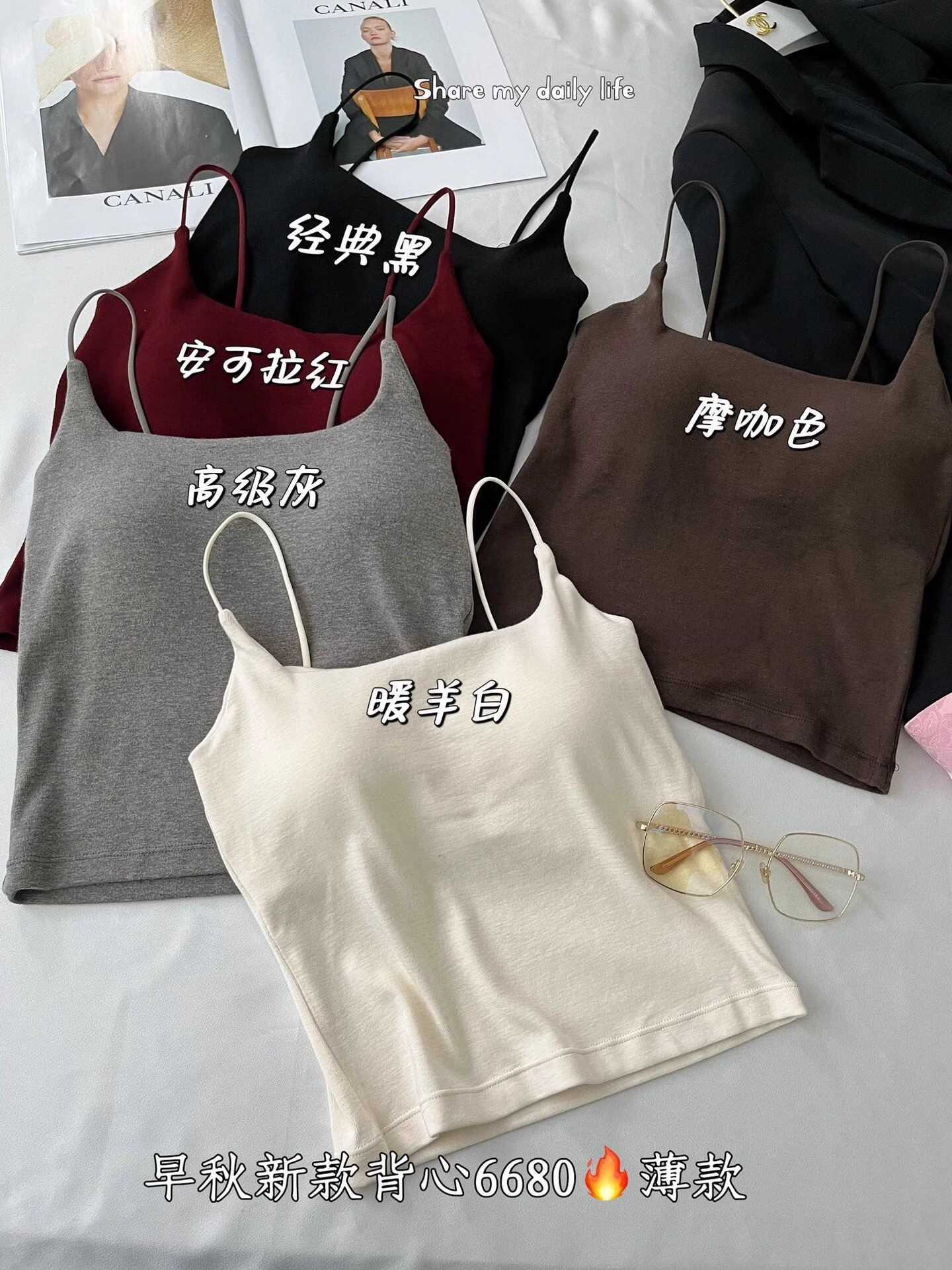 후이즈신 6680 # 초가을 신상 면 고정 일체형 컵 캐미솔, 활용도가 높고 편안하며 슬림한 밑단 탑