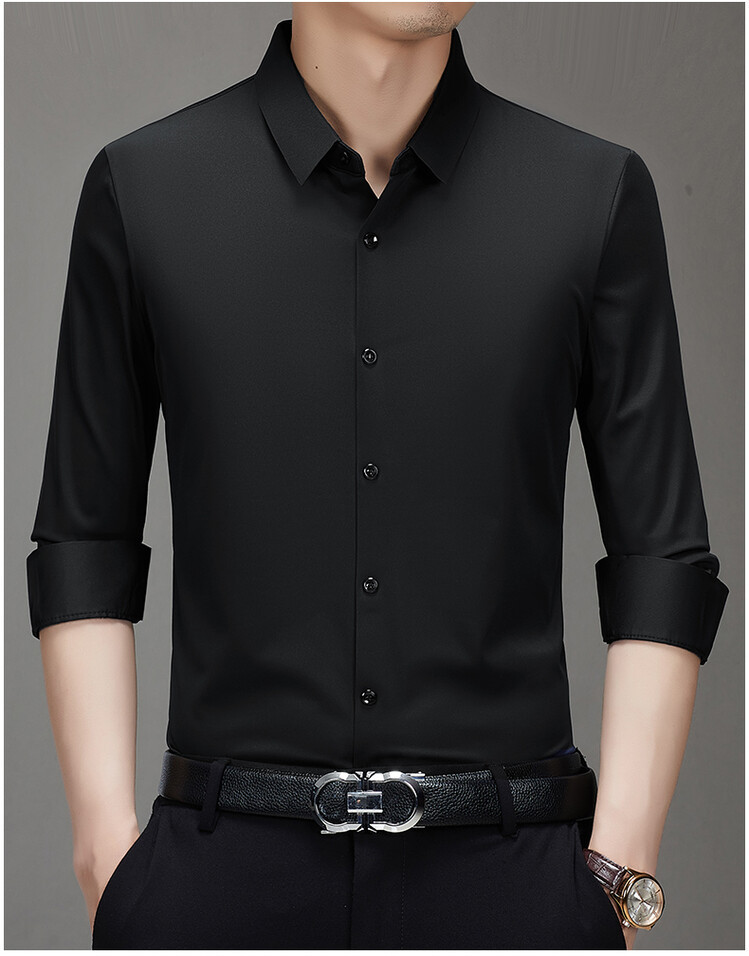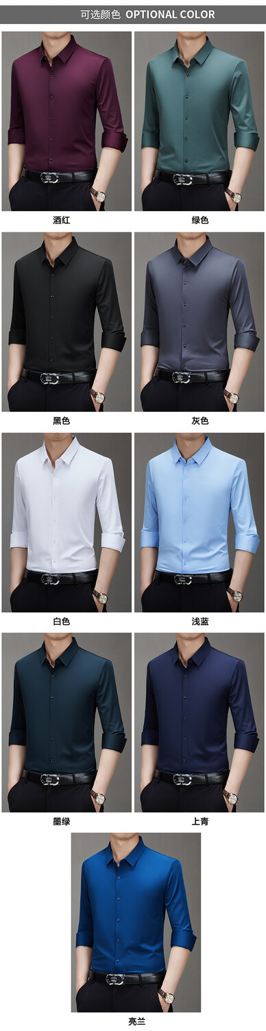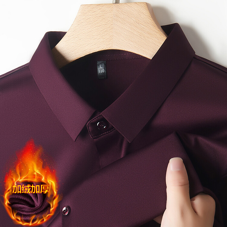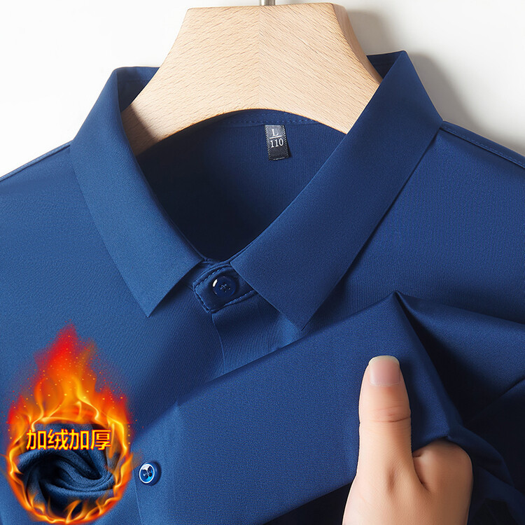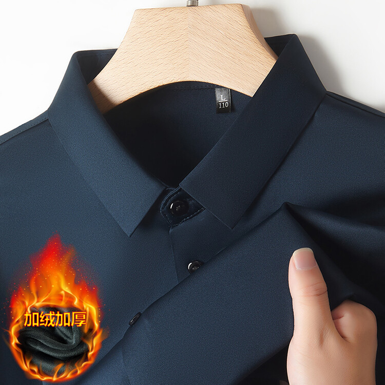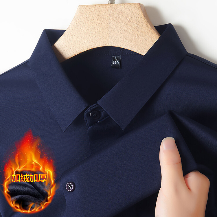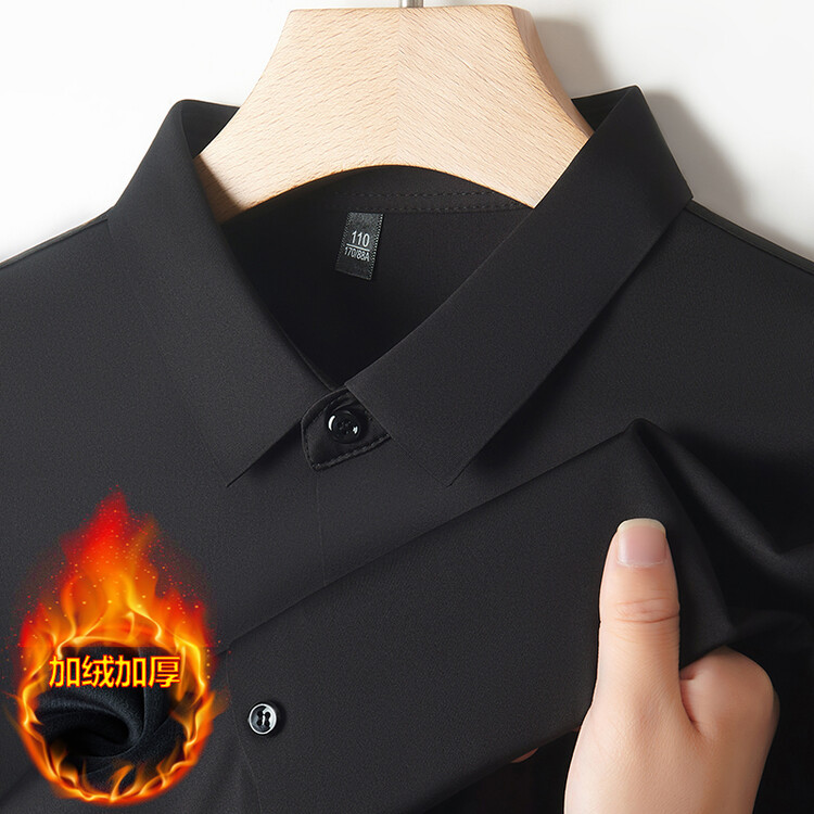 폭발적인 원활한 기모 긴 소매 셔츠 남성 봄과 가을 비즈니스 캐주얼 단색 원피스 남성 탄성 셔츠 생성 헤어