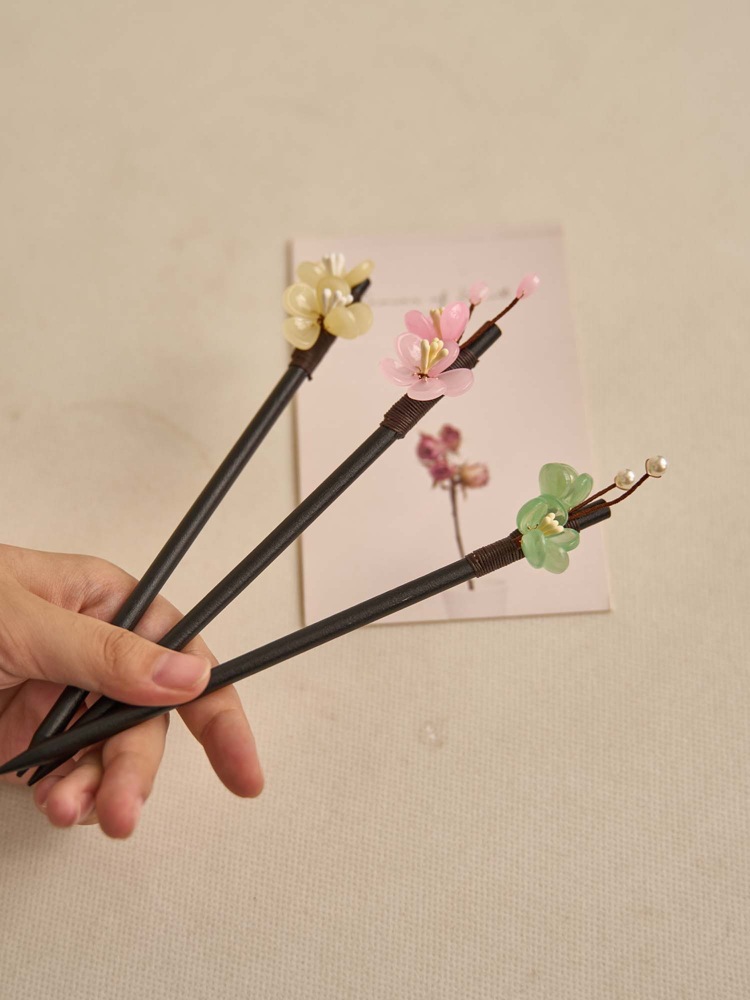 머리핀 꽃 기록 원래 디자인 멀티 컬러 3 복숭아 꽃 머리핀 골동품 한후 액세서리 머리핀 경치 재고 도매스토어 가기