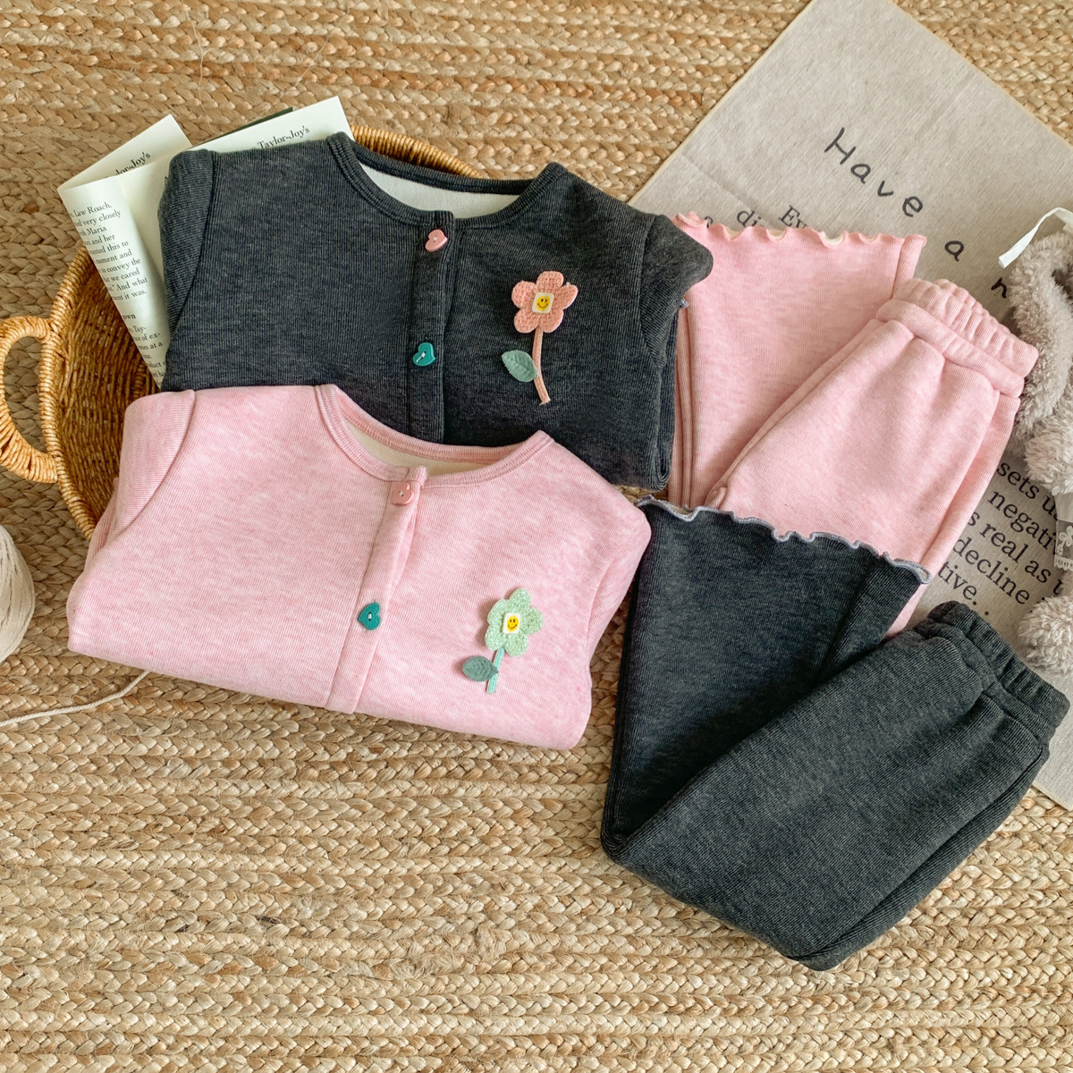 새로운 벨벳 카디건 플레어 팬츠 슈트 2025 가을 겨울 찹쌀 벨벳 여아 패셔너블 무스 벨벳 투피스 세트스토어 가기