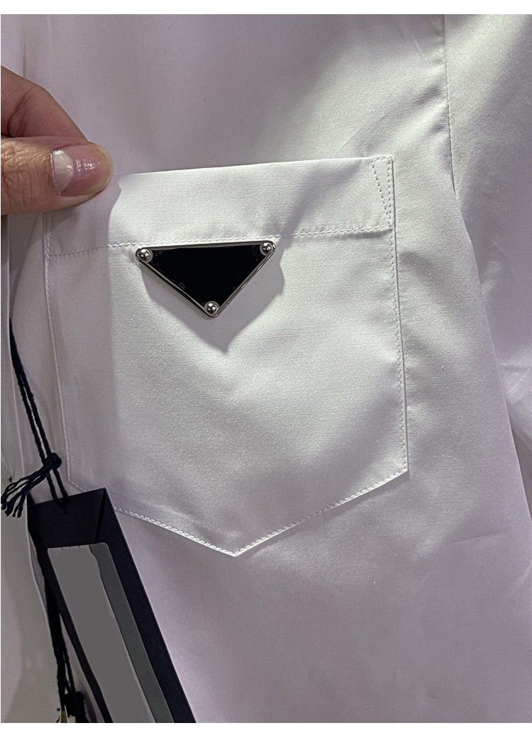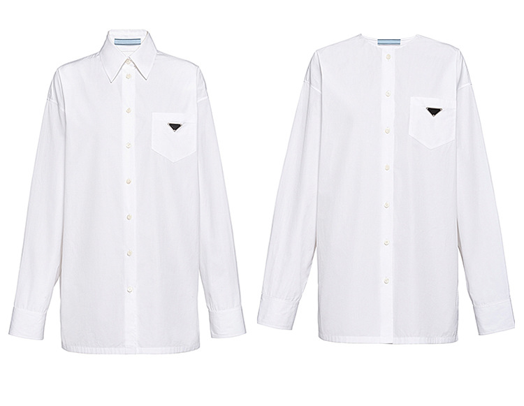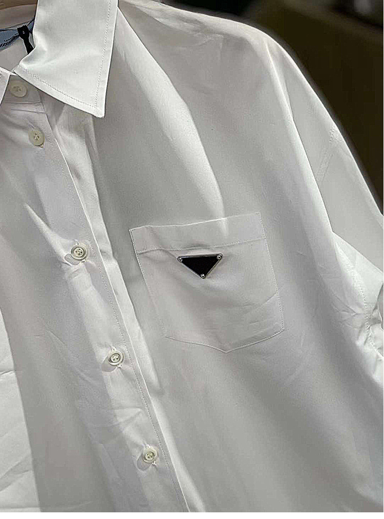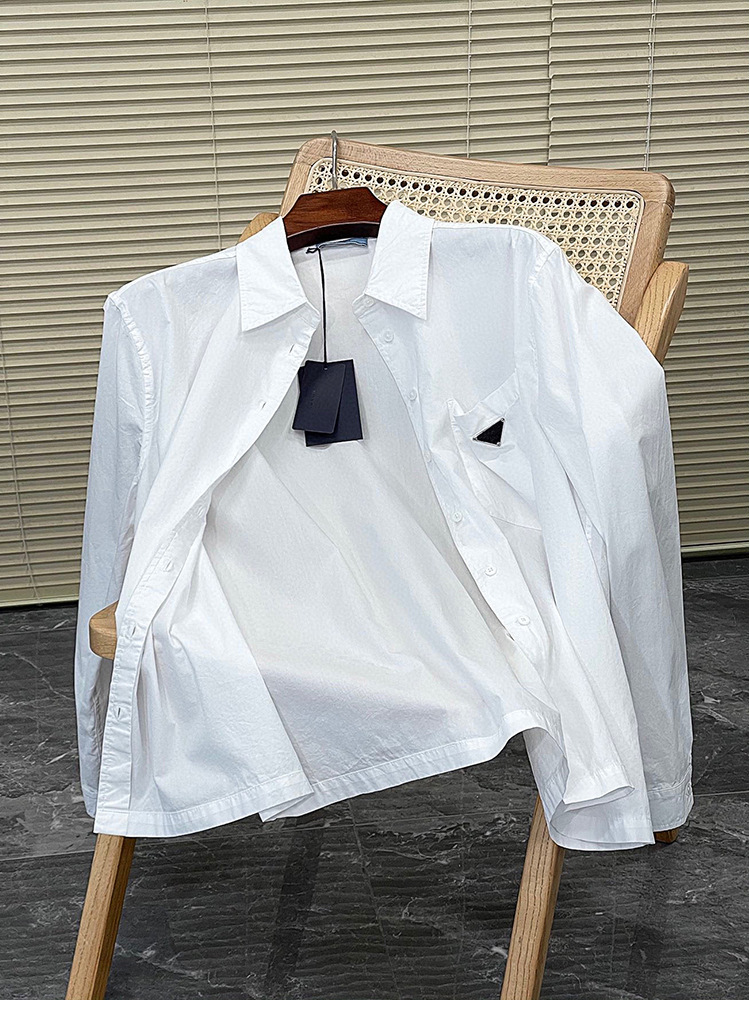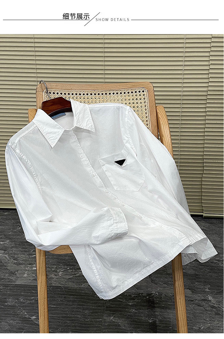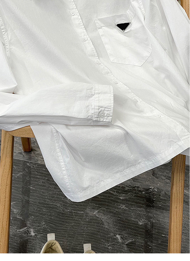 Nanyou P 홈 하이 퀄리티 재고 삼각형 라벨 느슨한 흰색 셔츠 남자의 2024s 봄과 여름 새로운 긴 소매 면 셔츠 여성