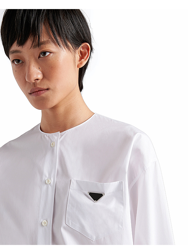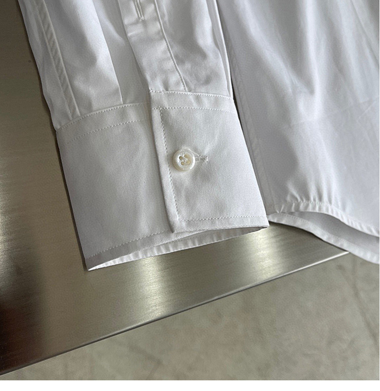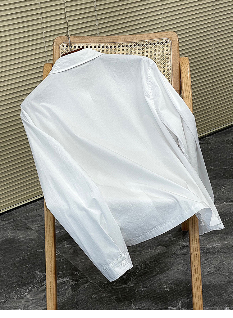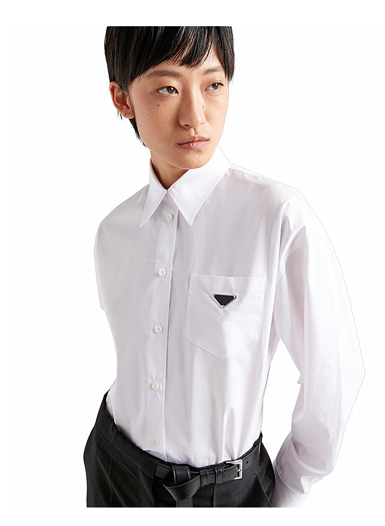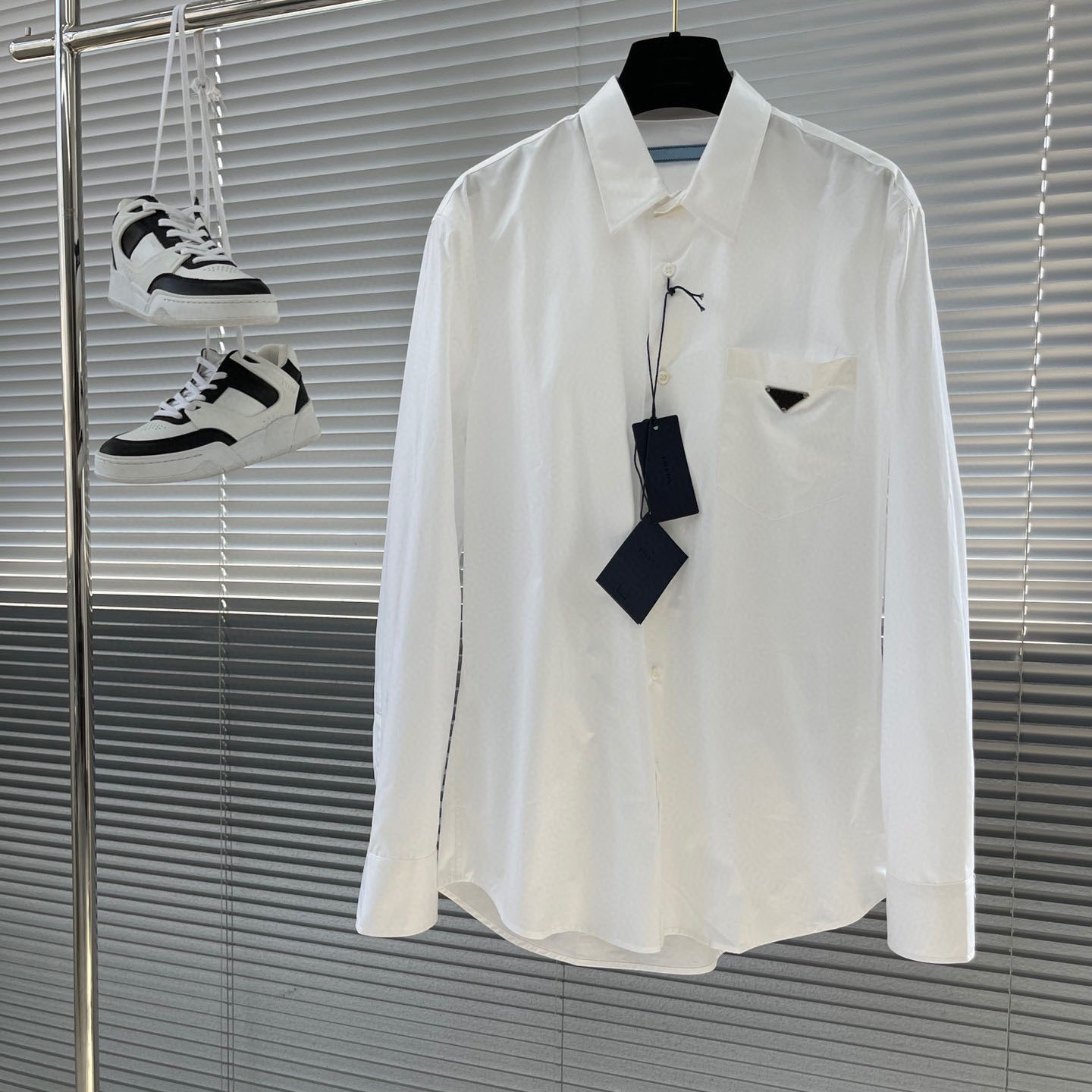 Nanyou P 홈 하이 퀄리티 재고 삼각형 라벨 느슨한 흰색 셔츠 남자의 2024s 봄과 여름 새로운 긴 소매 면 셔츠 여성