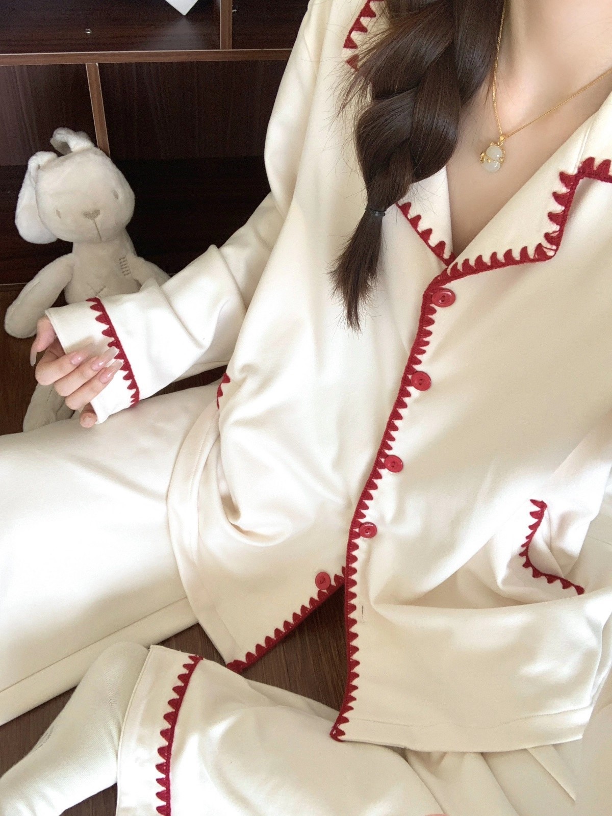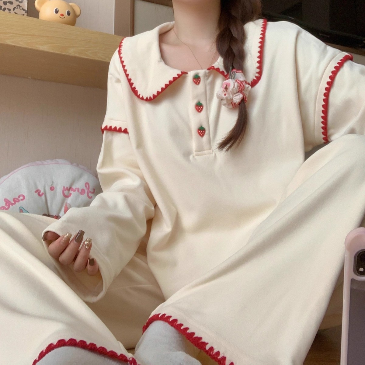 독일산 벨벳 잠옷 여성용 가을 겨울 두꺼운 보온 세트 귀엽고 달콤한 한국 스타일 홈웨어 겨울용 큰 사이즈 외출복 가능스토어 가기
