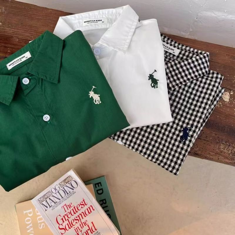 2024 새로운 봄과 가을 얇은 격자 무늬 셔츠 캐주얼 소년의 아기 면 한국 스타일 유행 옷깃 어린이 탑스토어 가기