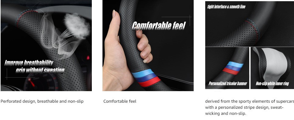 국경 간 자동차 보호 커버 스티어링 휠 나파 가죽 스티어링 휠 커버 가죽 미끄럼 통기성, 범용 핸들 커버에 적합