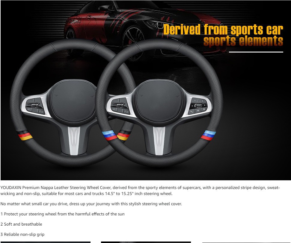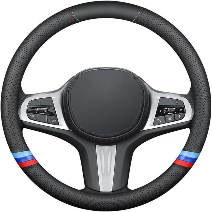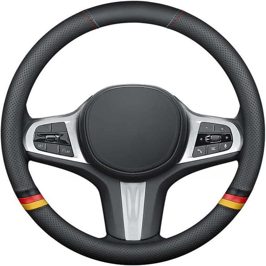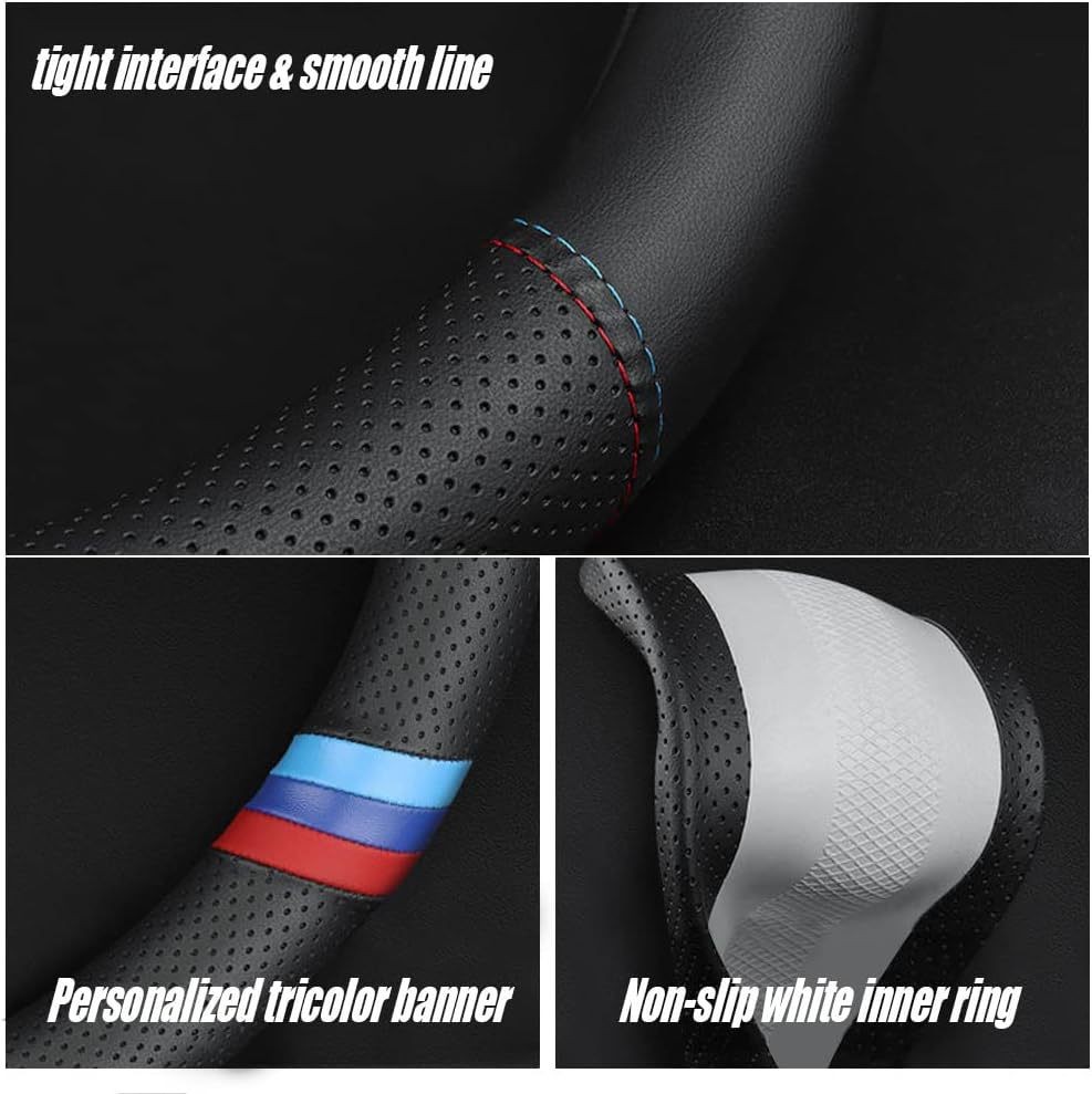 국경 간 자동차 보호 커버 스티어링 휠 나파 가죽 스티어링 휠 커버 가죽 미끄럼 통기성, 범용 핸들 커버에 적합스토어 가기