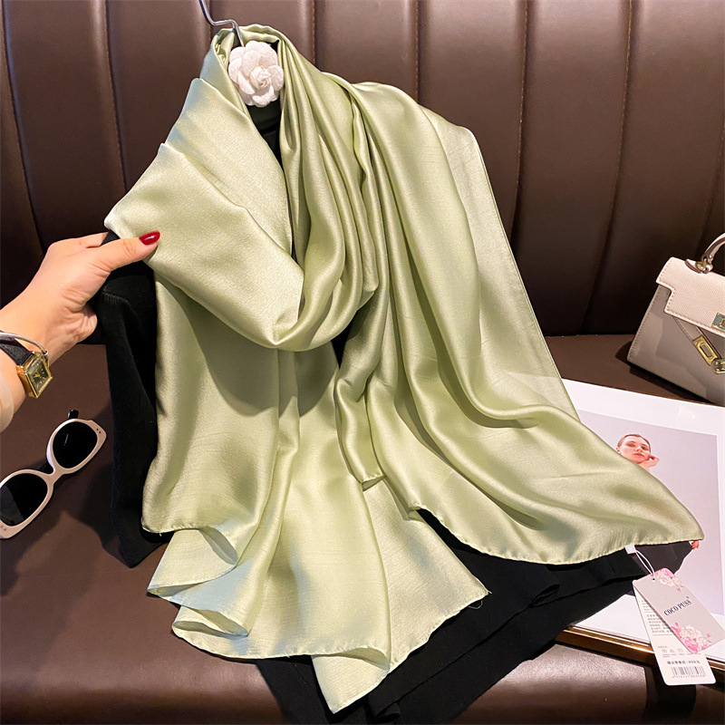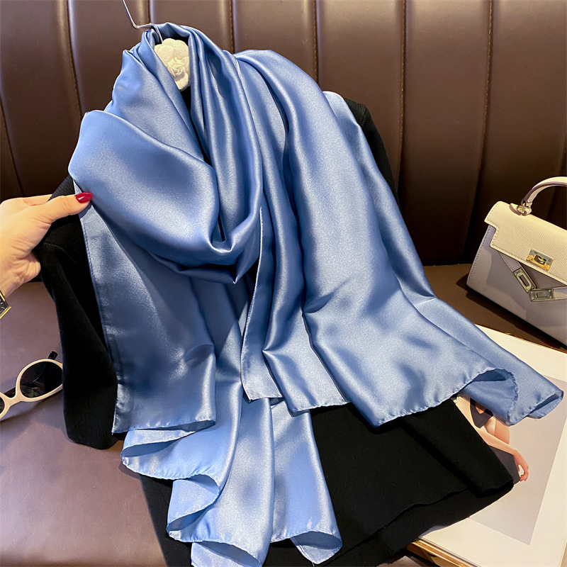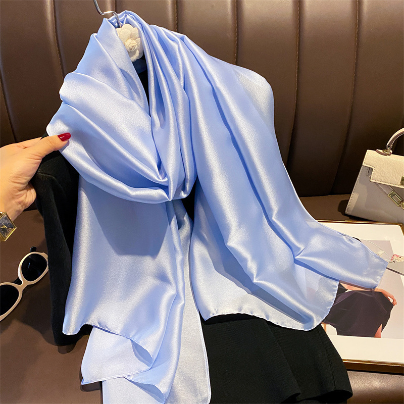새로운 봄과 여름 단색 실크 스카프 여성의 작은 목 장식 조커 여성의 긴 스카프 도매스토어 가기