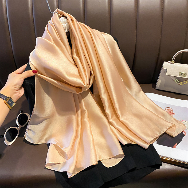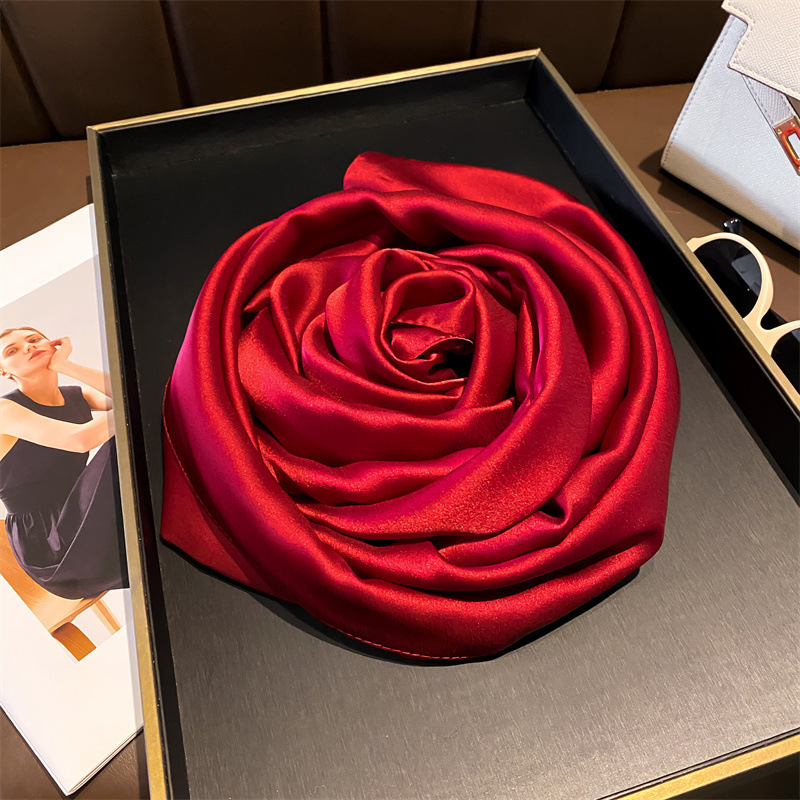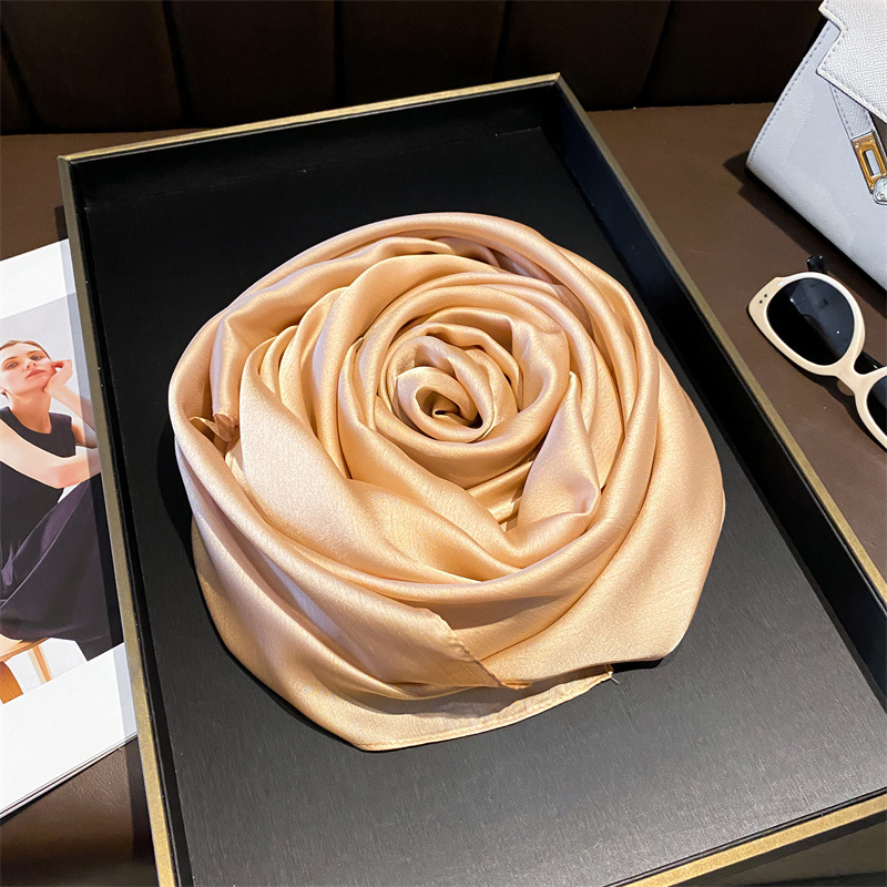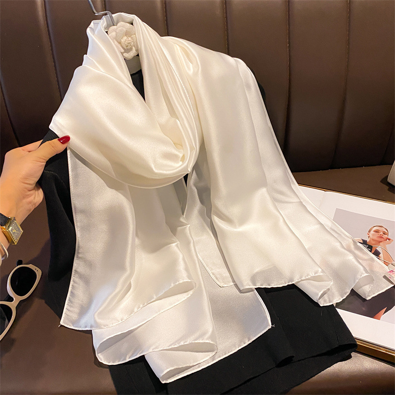새로운 봄과 여름 단색 실크 스카프 여성의 작은 목 장식 조커 여성의 긴 스카프 도매