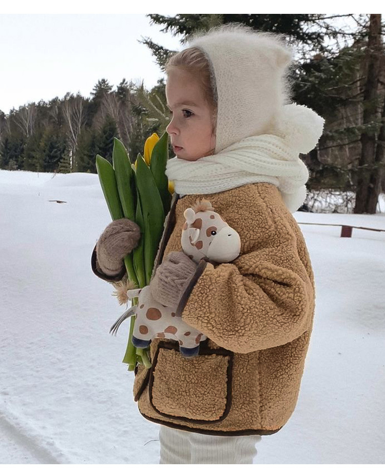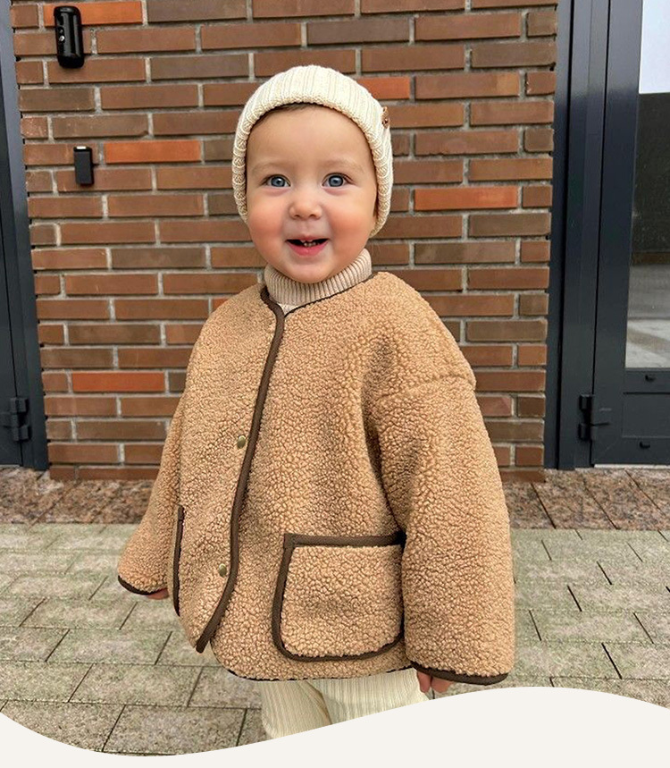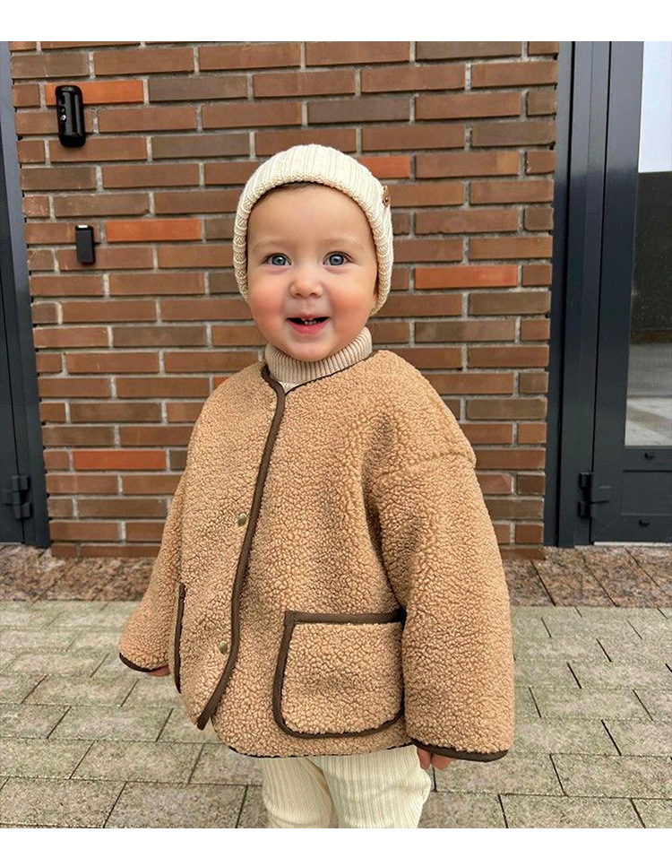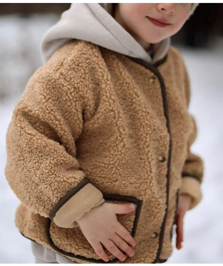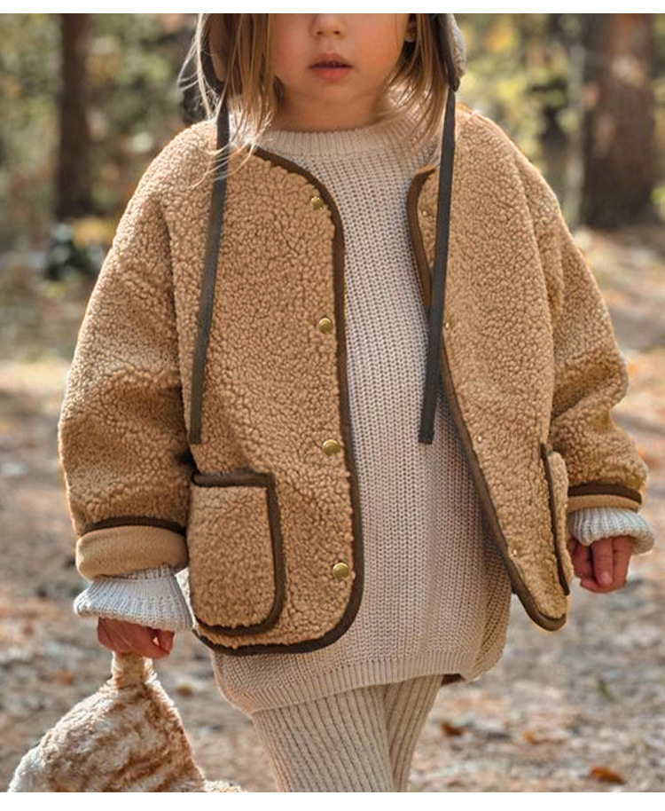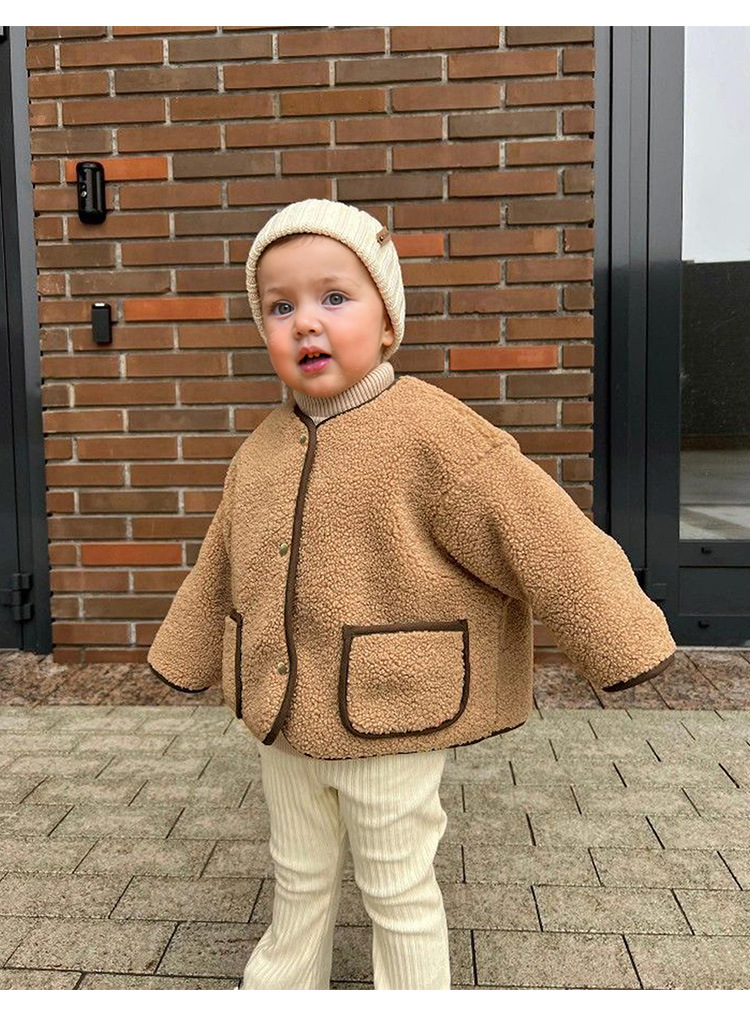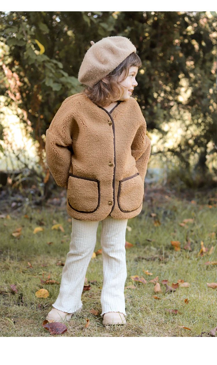25 가을 겨울 폴라 플리스 재킷 남녀공용 디자인 컬러블록 여아복 싱글 버튼 긴팔 양털 가디건
