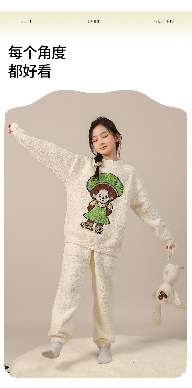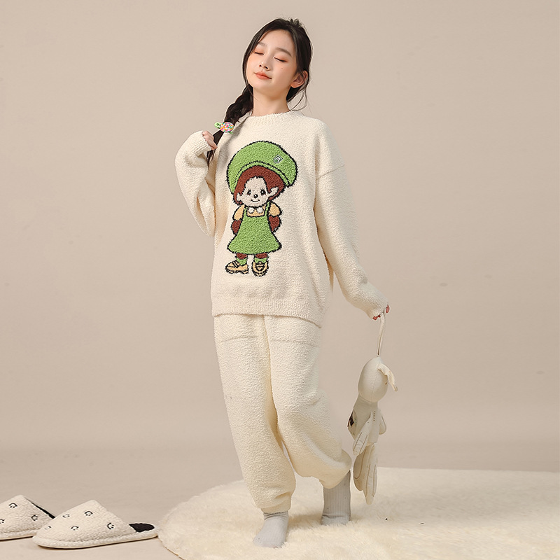 귀엽고 부드러운 홈웨어 세트, 귀여운 가을 겨울 여아 잠옷, 프란넬 만화 캐릭터 신상 2025스토어 가기