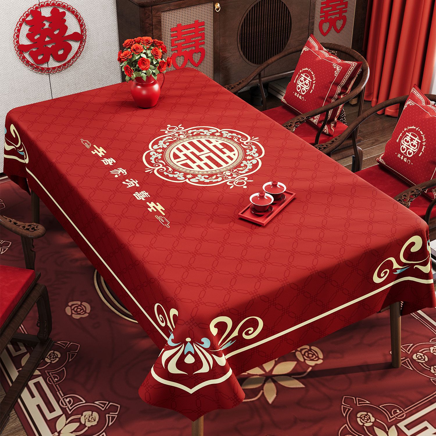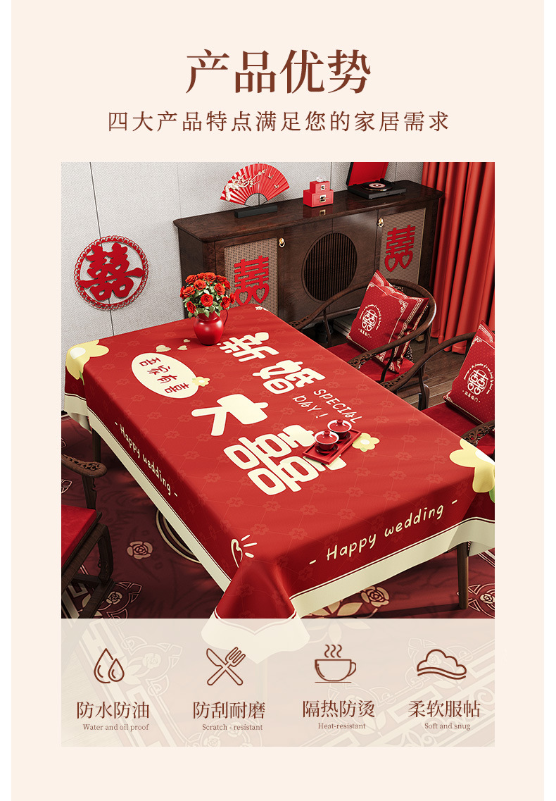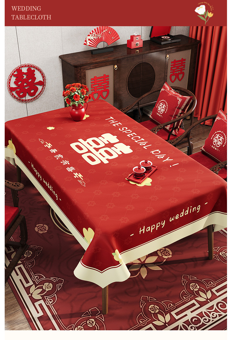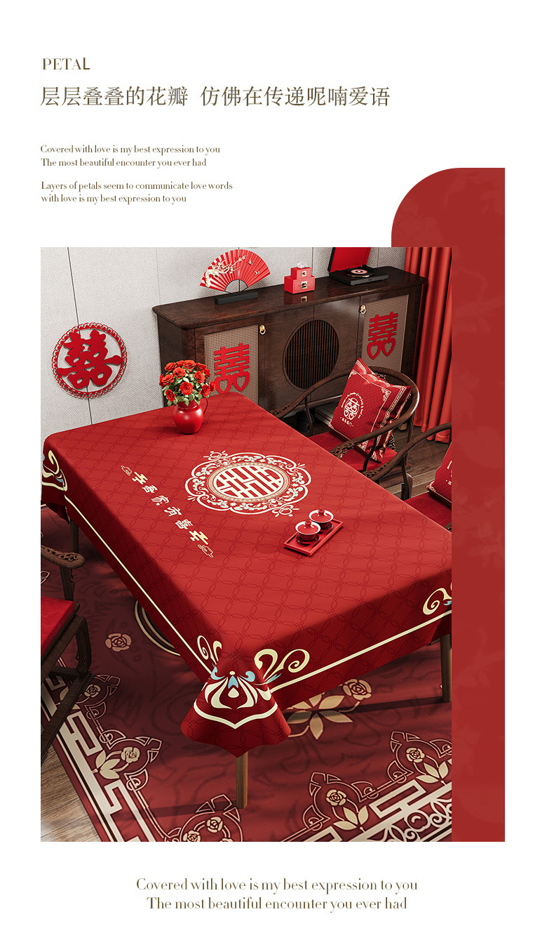 웨딩 레드 식탁보 오일 방지 방수 방수 워시프리 라이트 럭셔리 하이 엔드 센스 2024 새로운 식탁 용 식탁보 가정용 커피 테이블 테이블 테이블 테이블 테이블